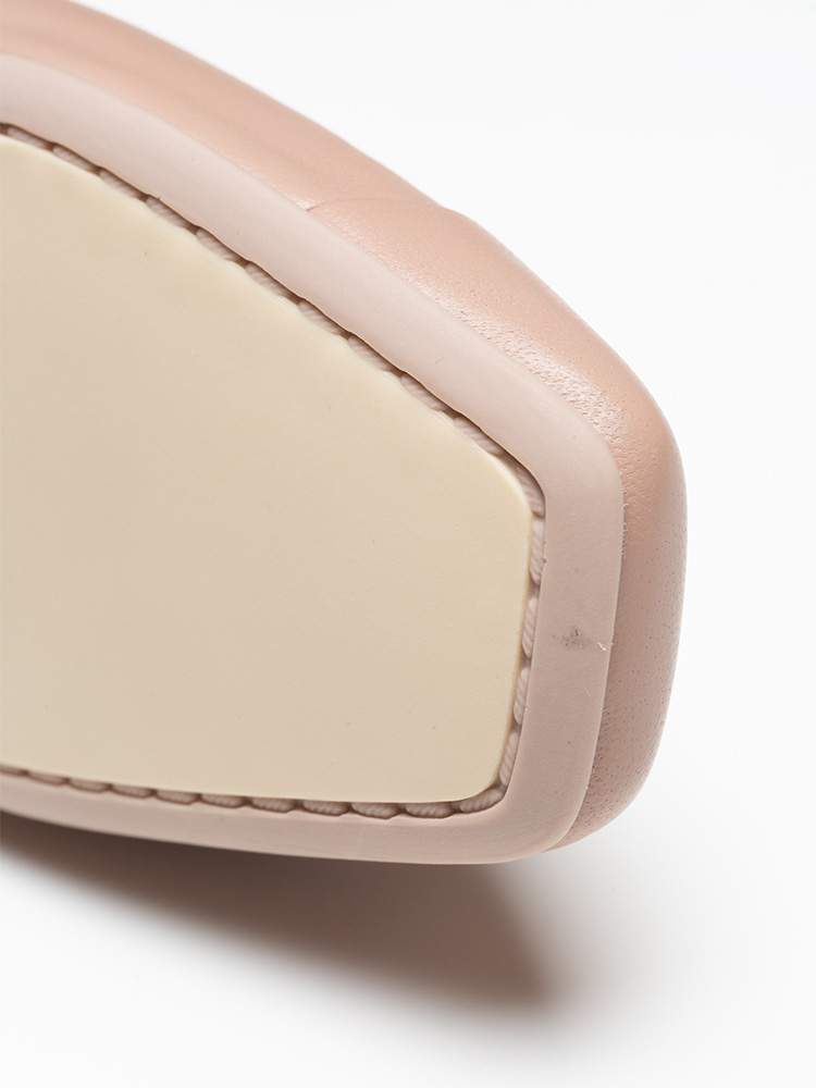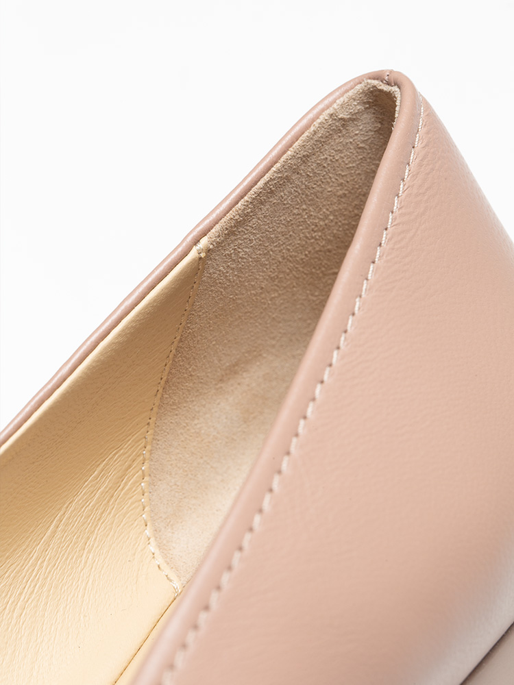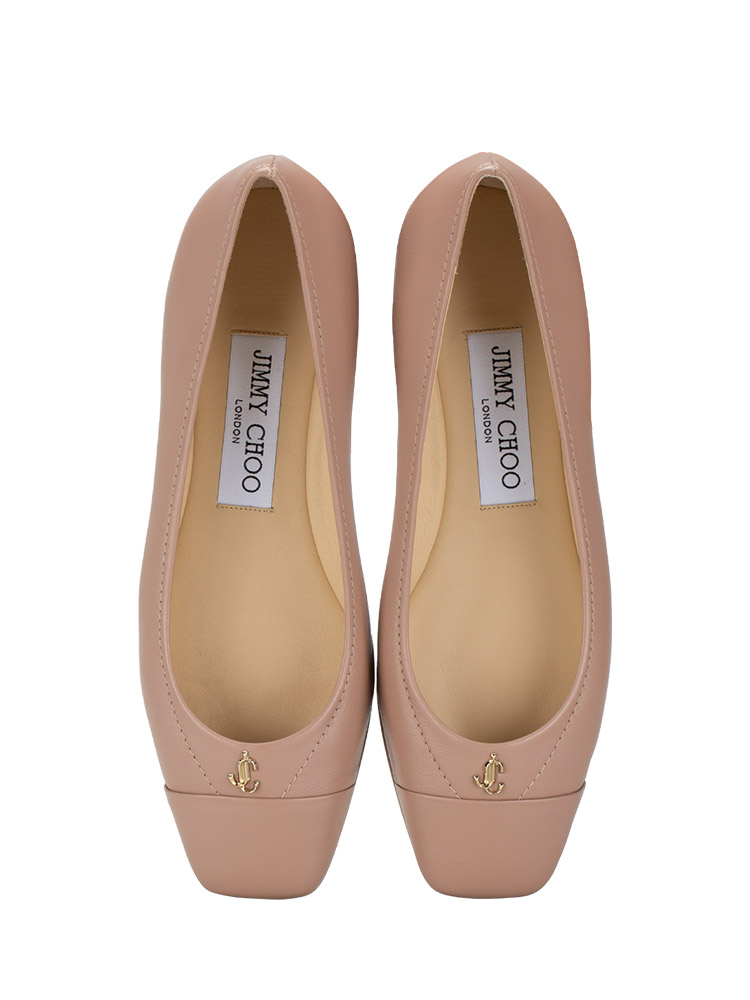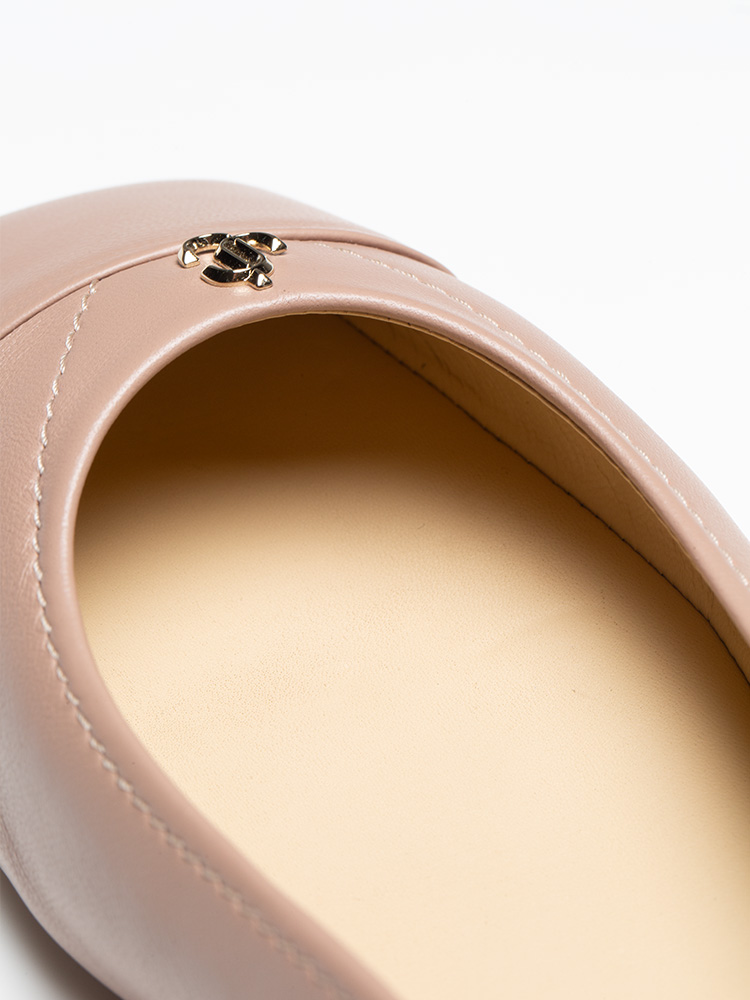 These flats are crafted of nappa lambskin leather with a gold-tone logo at cap toe.