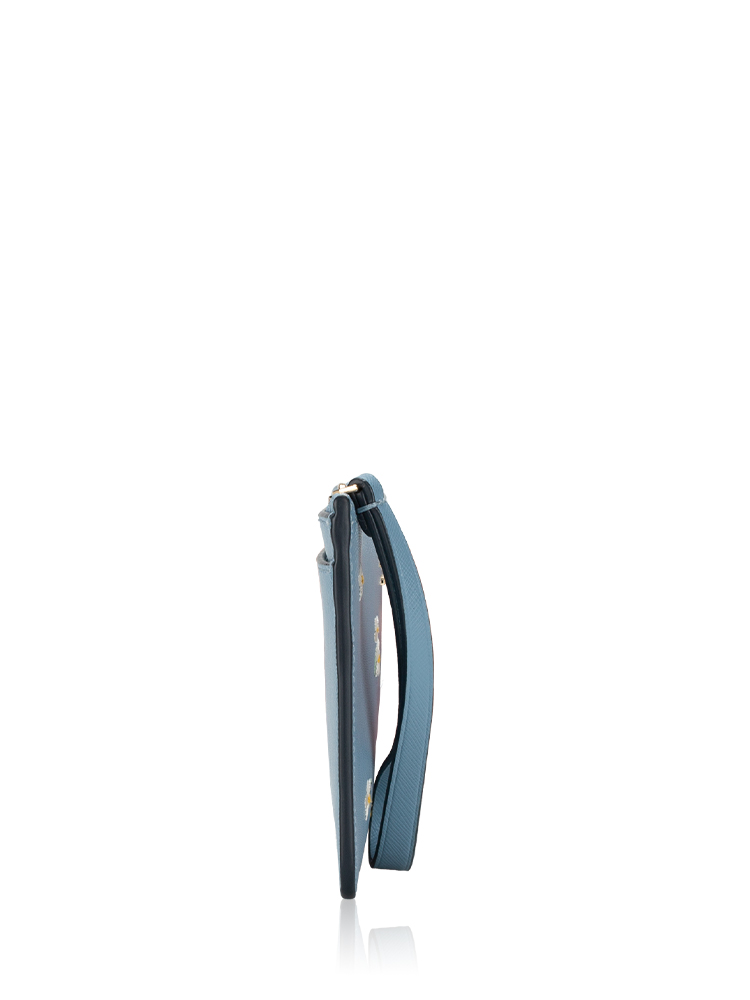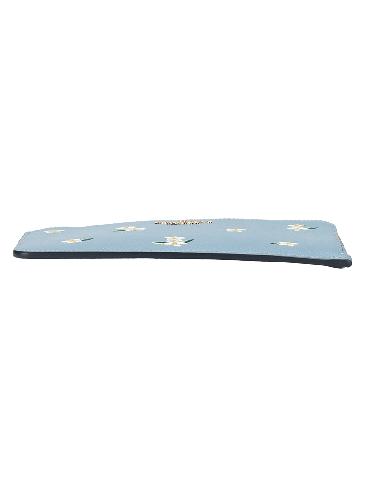 Lucy Floral Embroidered Leather Medium Wristlet Polished Blue