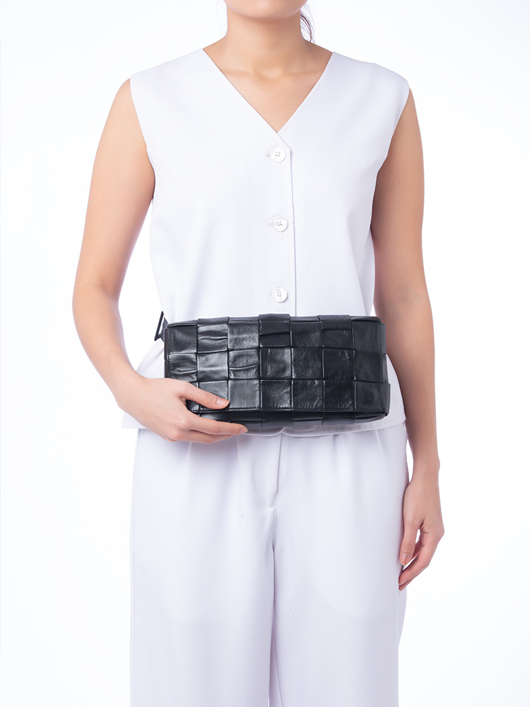 Paper Calfskin Intrecciato Stretch Cassette Black