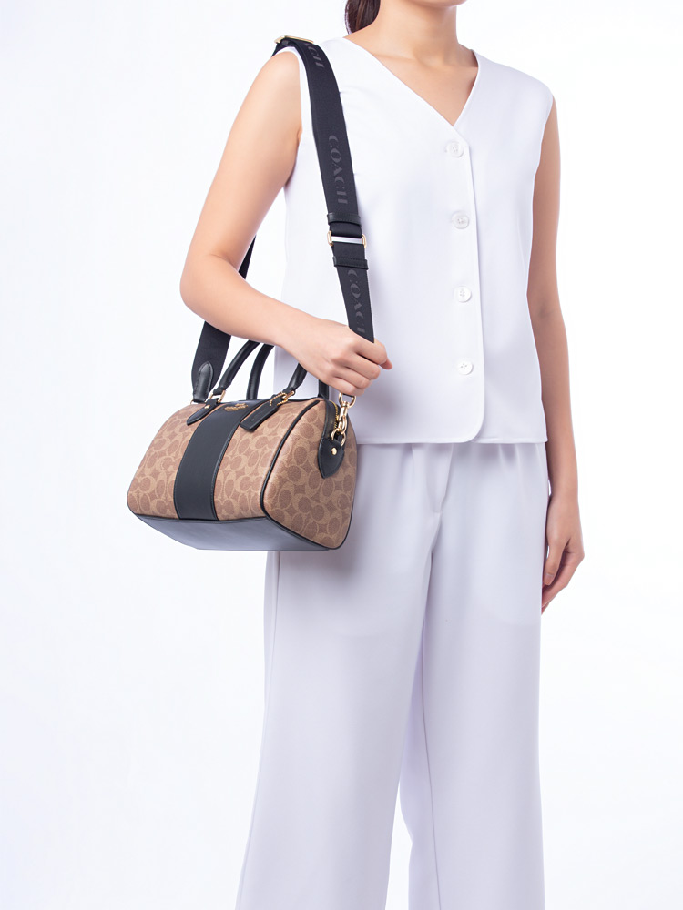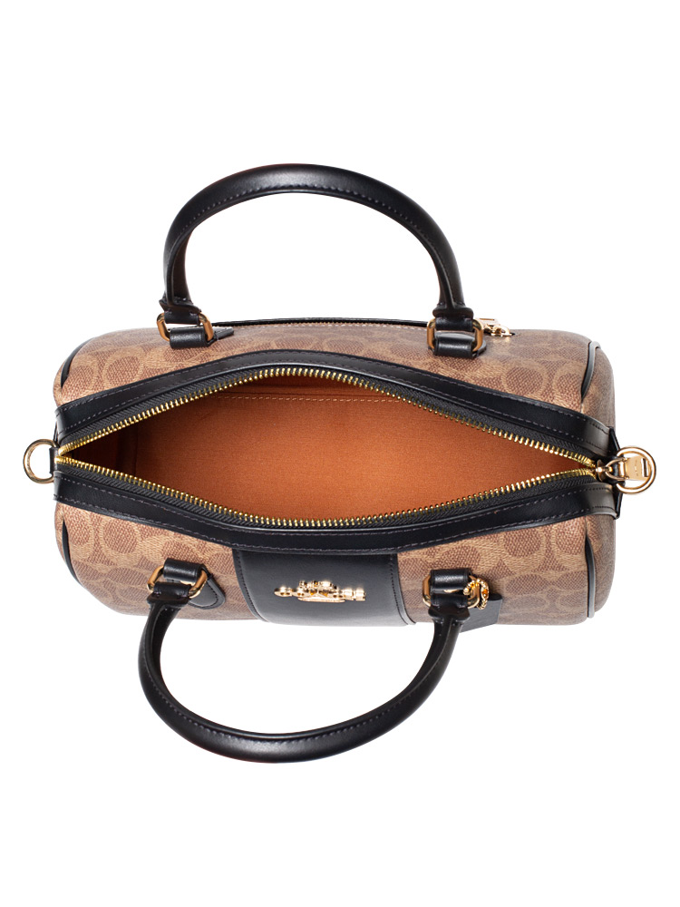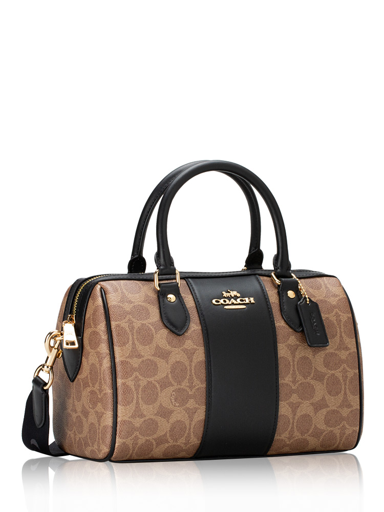 CW376 Signature Leather Stripe Rowan Satchel Tan Black