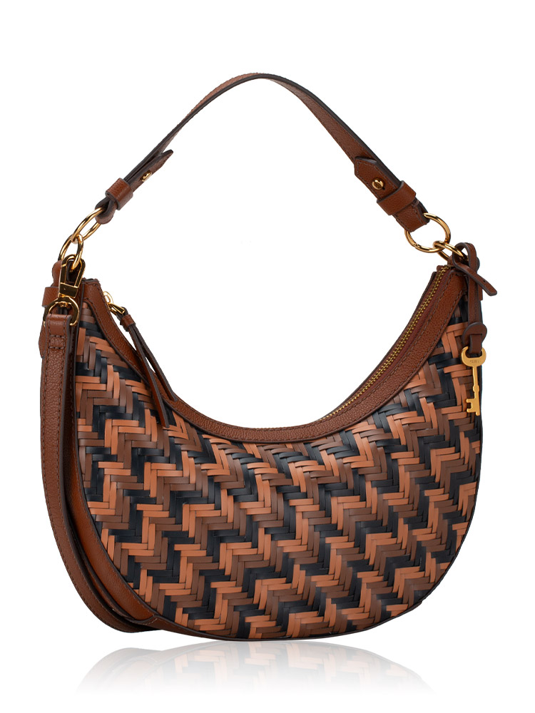 This polyurethane small hobo features 1 slide pocket, 1 zip pocket and 1 adjustable & detachable crossbody strap with 1 short shoulder detachable strap.