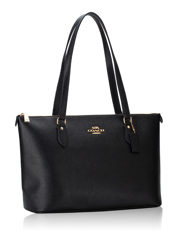 Made of crossgrain leather. The bag features a zip closure that opens to fabric lining with two slip pockets, one zip pocket, exterior one zip pocket at back.