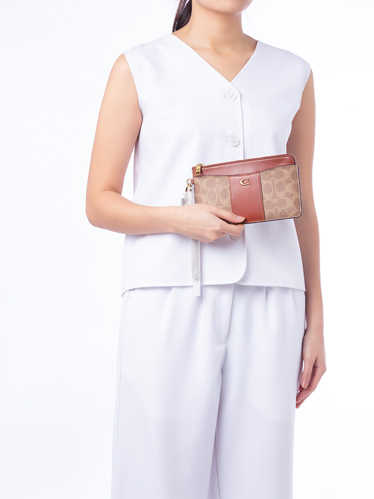 Crafted of Signature canvas and refined leather detailed with our Signature hardware, the streamlined design features eight card slots, two open pockets for cash or receipts and a secure zip compartment with room for a phone.