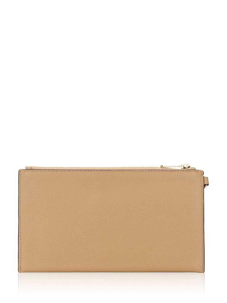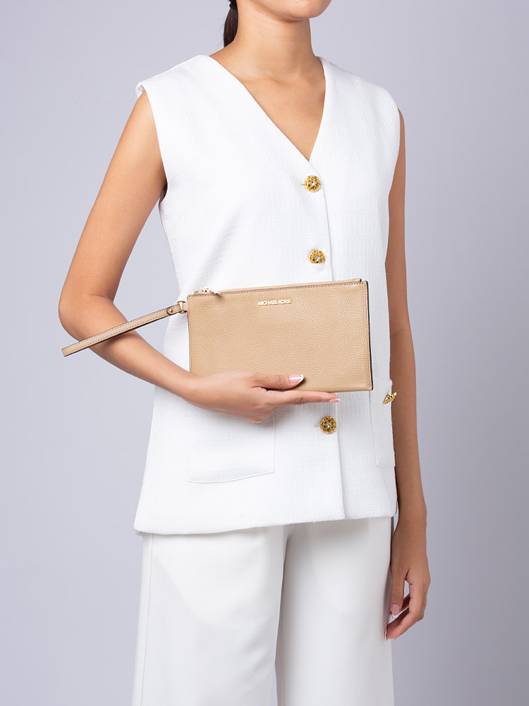 Jet Set Travel Leather Large Top Zip Wristlet Camel
