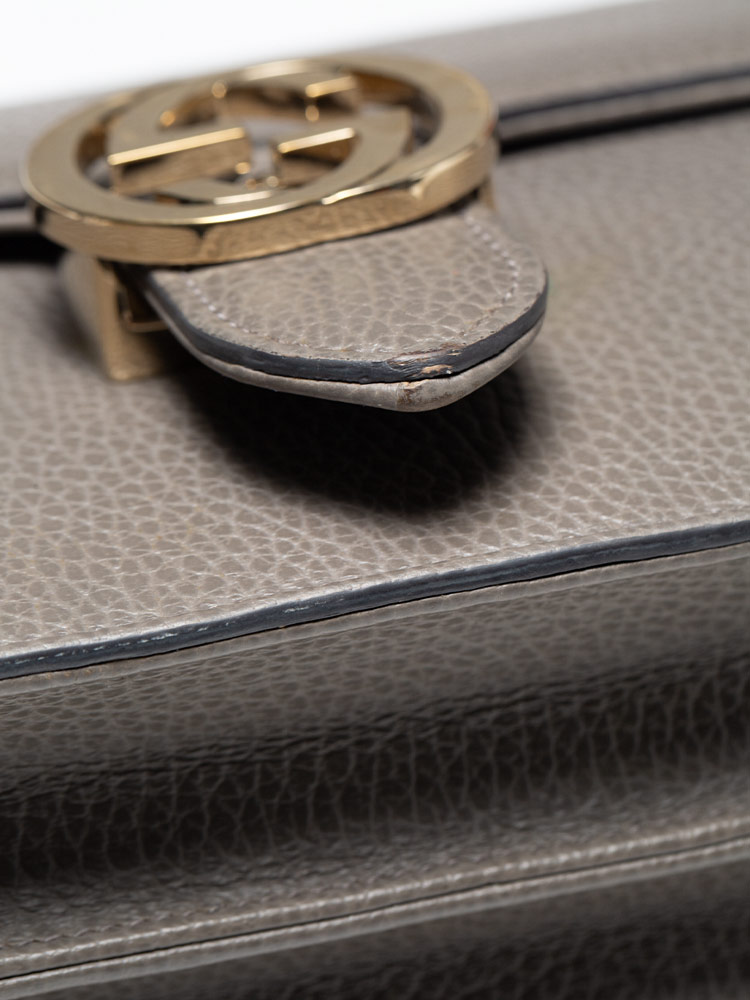 Dollar Calfskin Interlocking G Shoulder Bag Grey