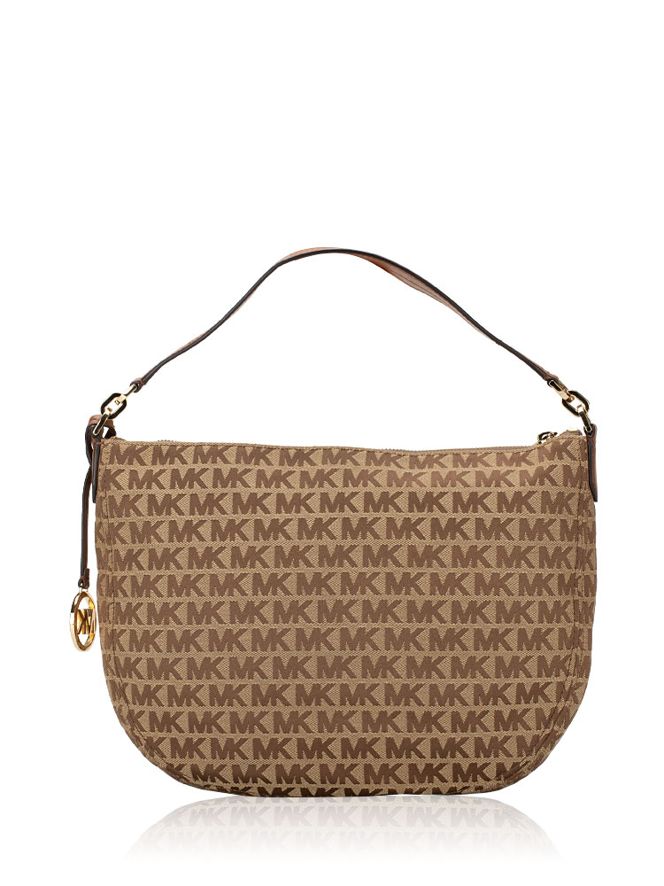 Bedford Signature Medium Crescent Shoulder Bag Beige Ebony