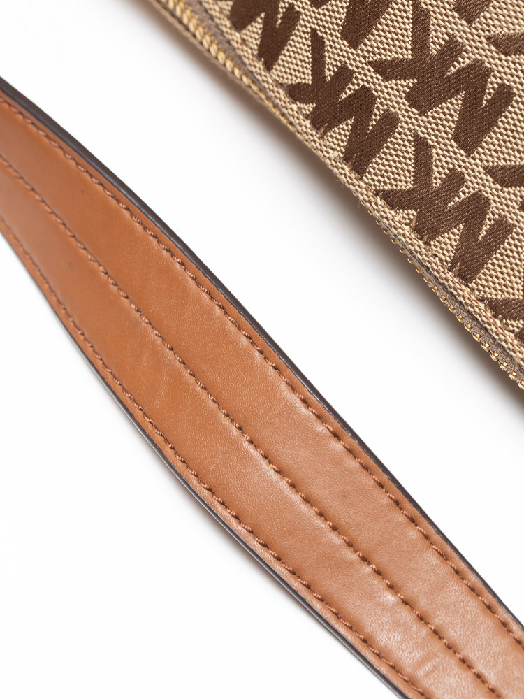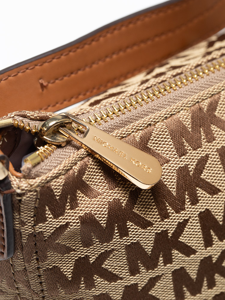 Crafted of signature canvas with leather trim. The bag features a shoulder strap, a zip closure, a polyester lining with a zip pocket and 2 slip pockets. It comes with an optional long strap.