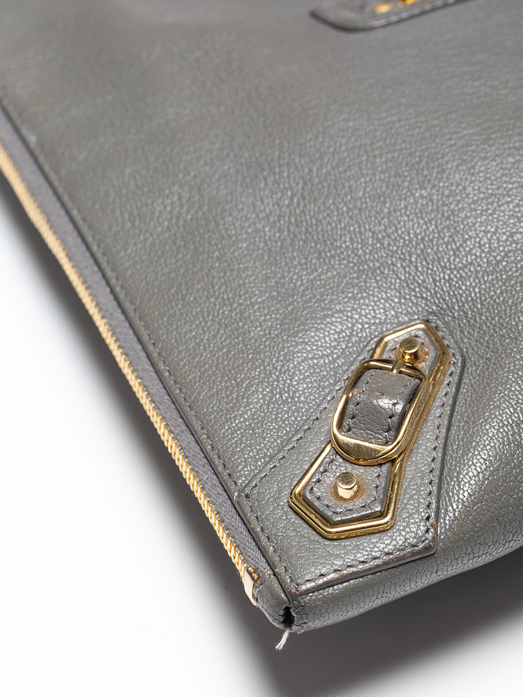 Gold Metallic Edge Pouch Gris Acier