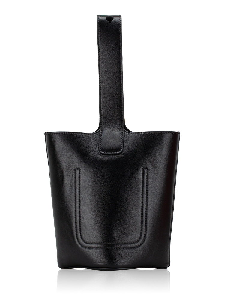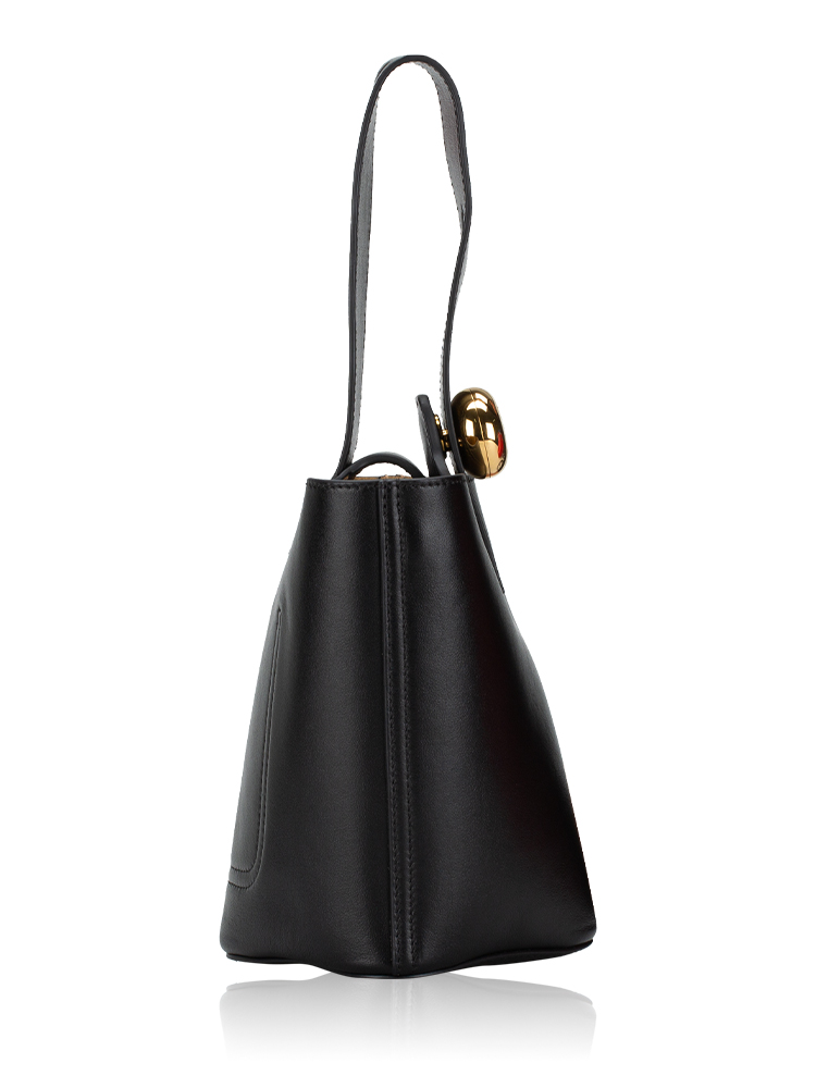 Smooth Calfskin Pebble Mini Bucket Bag Black