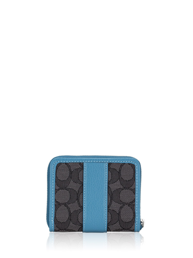 C8323 Signature Jacquard Lonnie Small Zip Around Wallet Black Smoke Pacific Blue