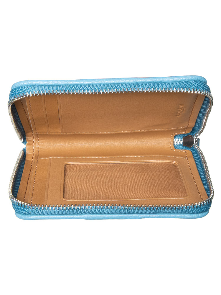 Signature jacquard and refined pebble leather. Two credit card slots, ID window, Full-length bill compartment, Inside open pockets, Zip-around closure, 4 1/2 (L) x 3 3/4 (H) x 3/4 (W) inc.