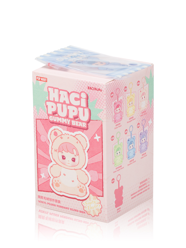 Made of Polyester and PVC. The hacipupu gummy bear series can be used as a bag chain or keychain.