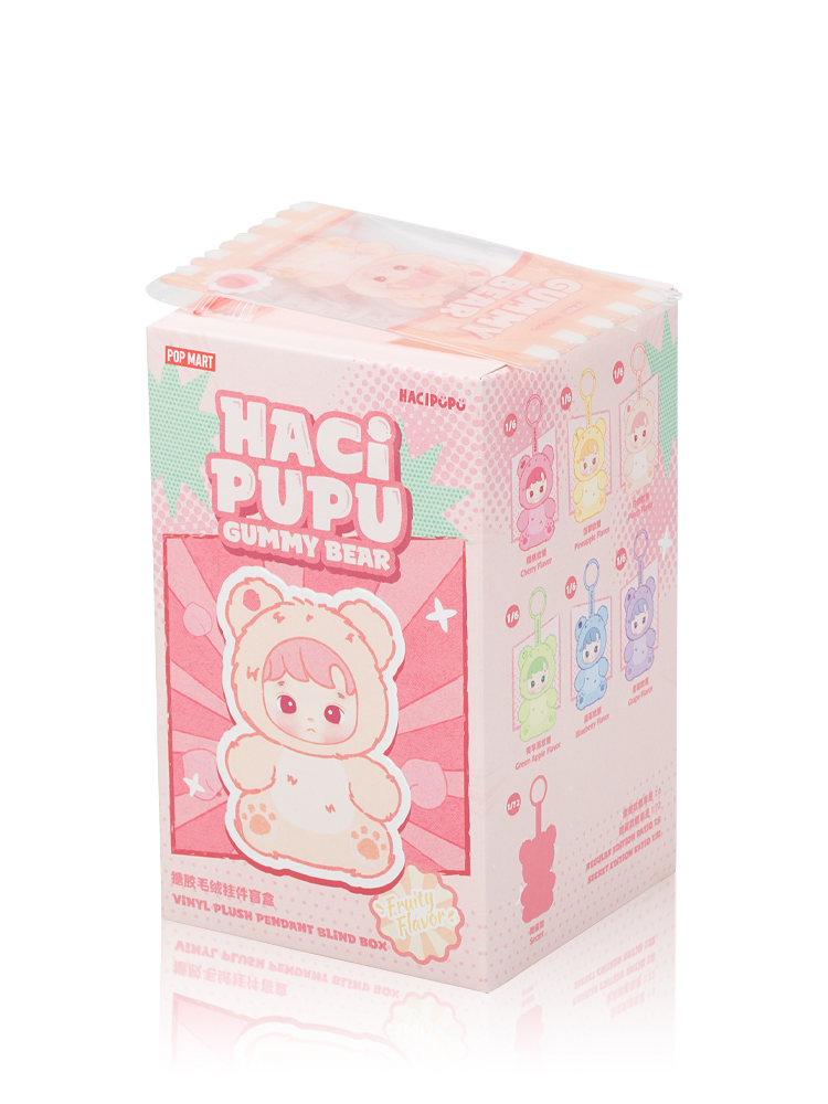 Made of Polyester and PVC. The hacipupu gummy bear series can be used as a bag chain or keychain.