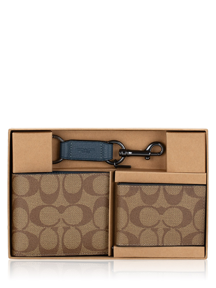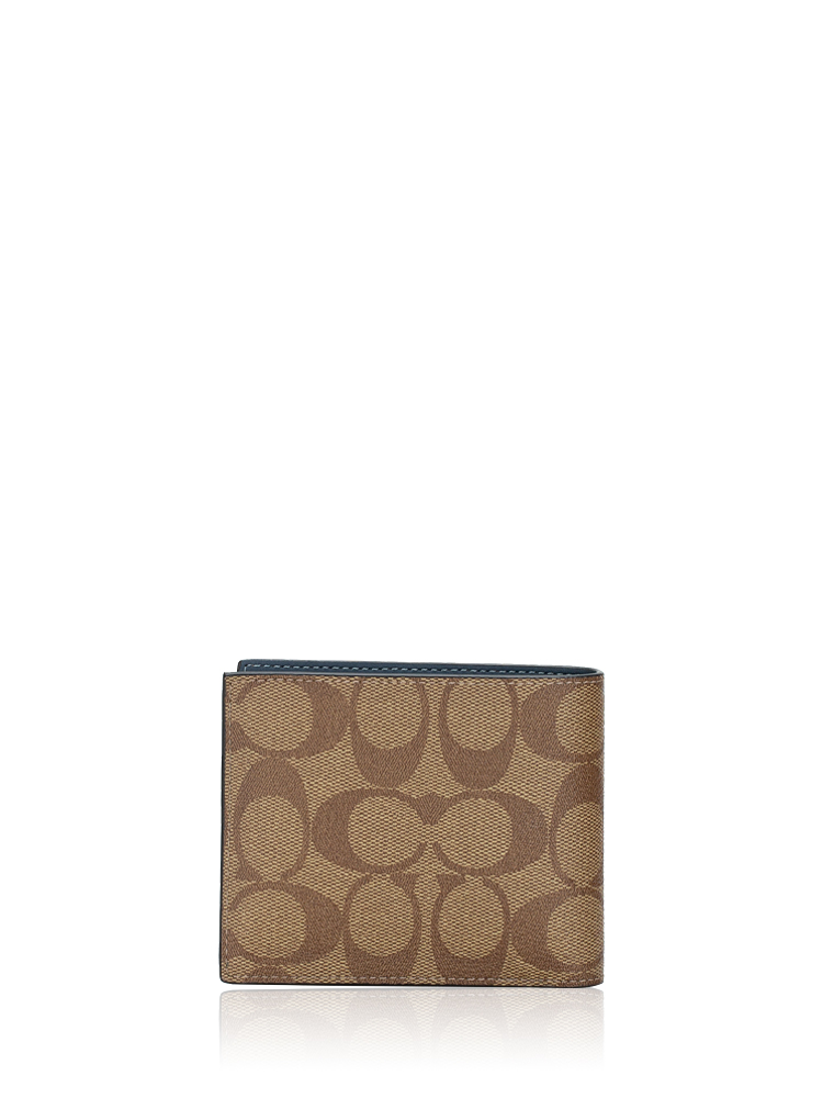 Men CU127 Signature 3 in 1 Colorblock Wallet Khaki Denim