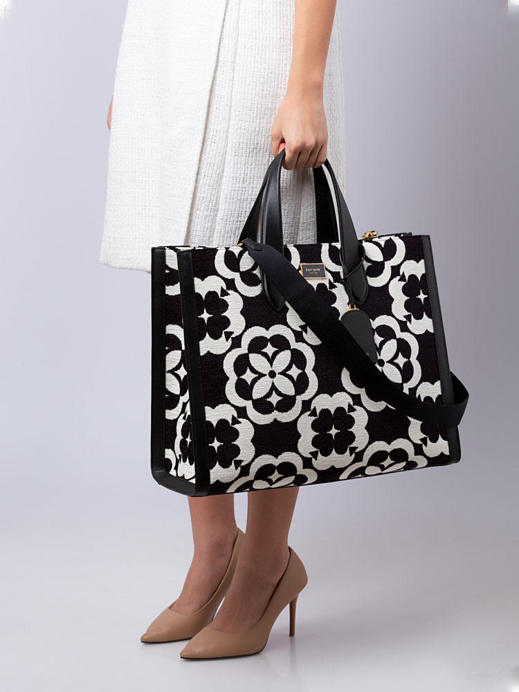 Spade Flower Monogram Manhattan Chenille Large Tote Black Multi
