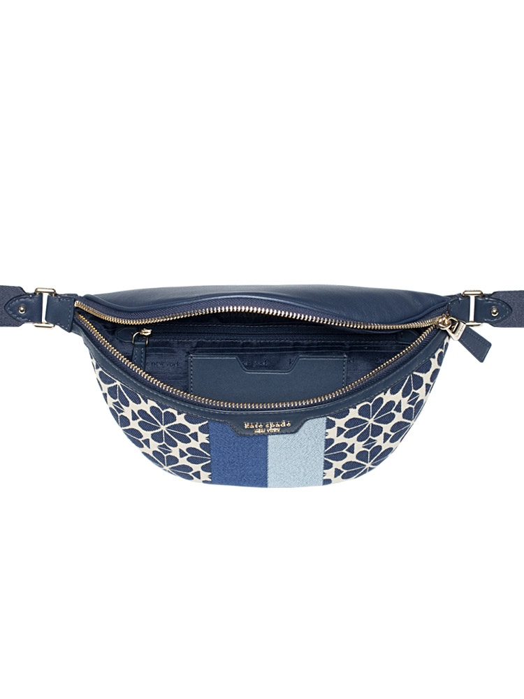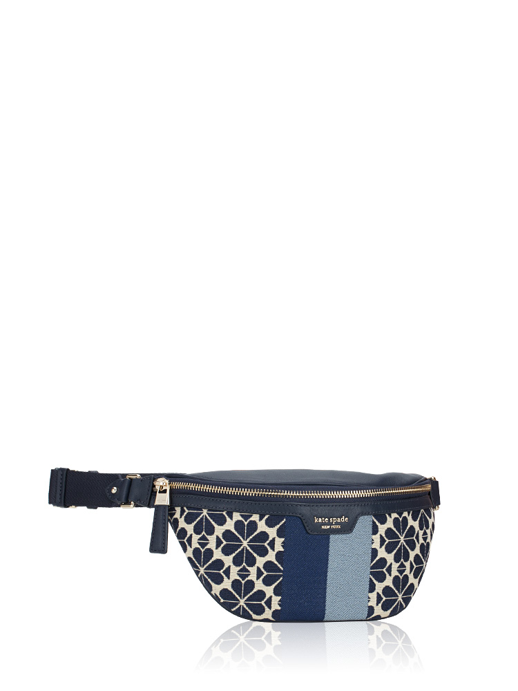 Spade Flower Jacquard Stripe Medium Belt Bag Blue Multi