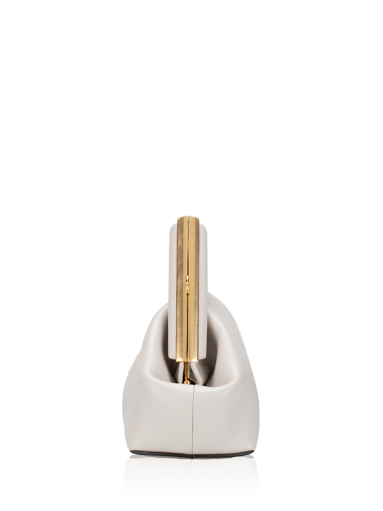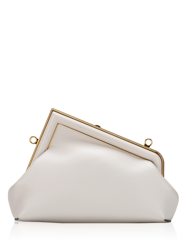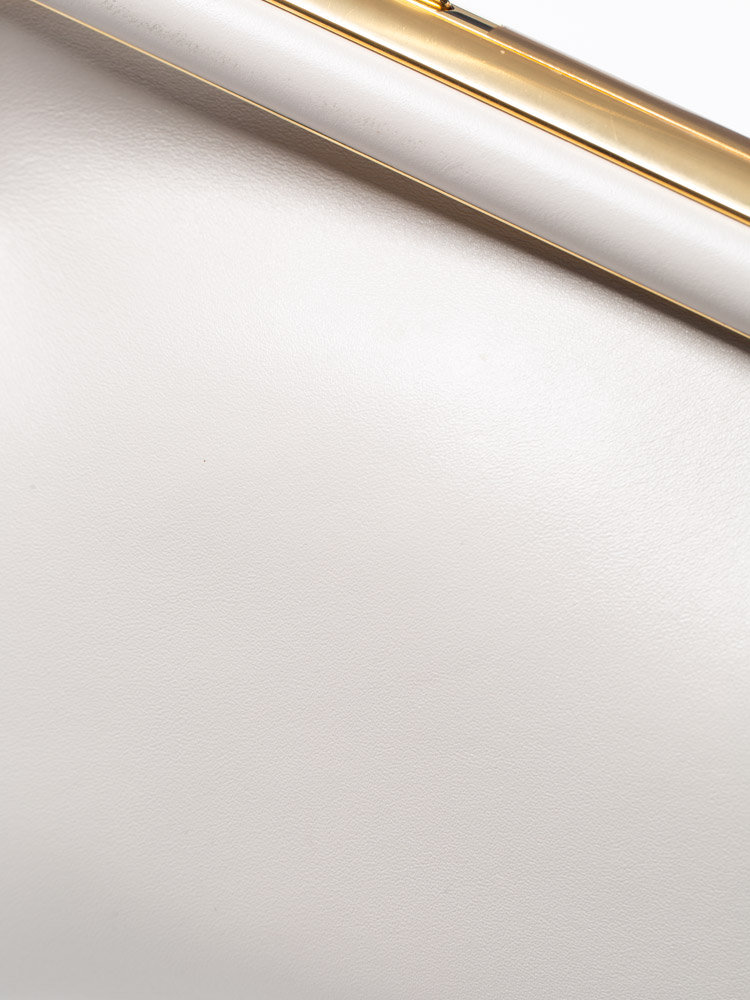This bag is crafted of supple lambskin leather. The bag features a matching optional shoulder strap with polished gold-tone hardware. The top opens with a prominent hinged,