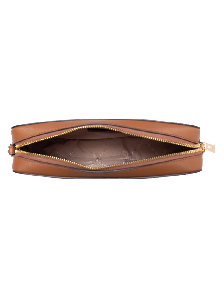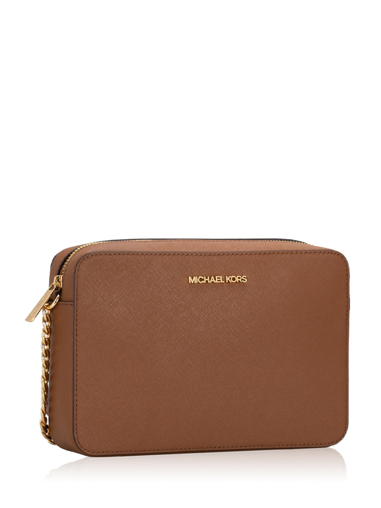 Crafted of saffiano leather, the bag features a zip closure that opens to matching polyester lining and one slip pockets inside. The attached chain-leather crossbody strap can be adjusted to your need.