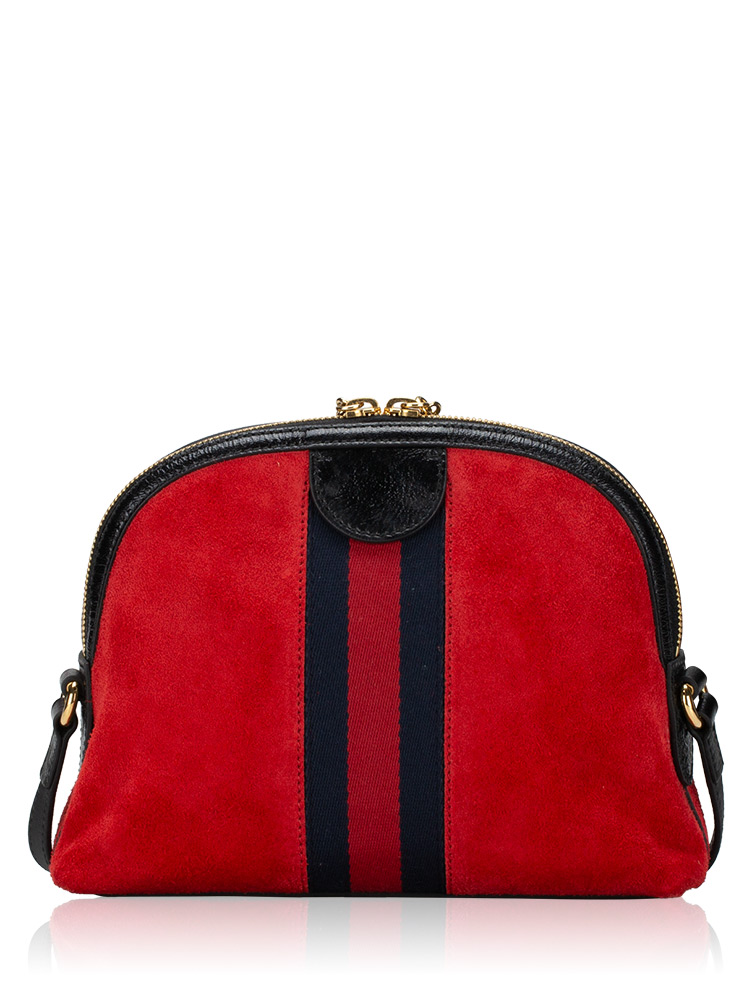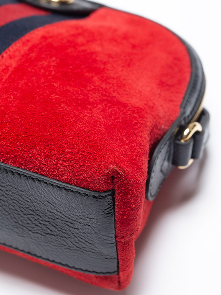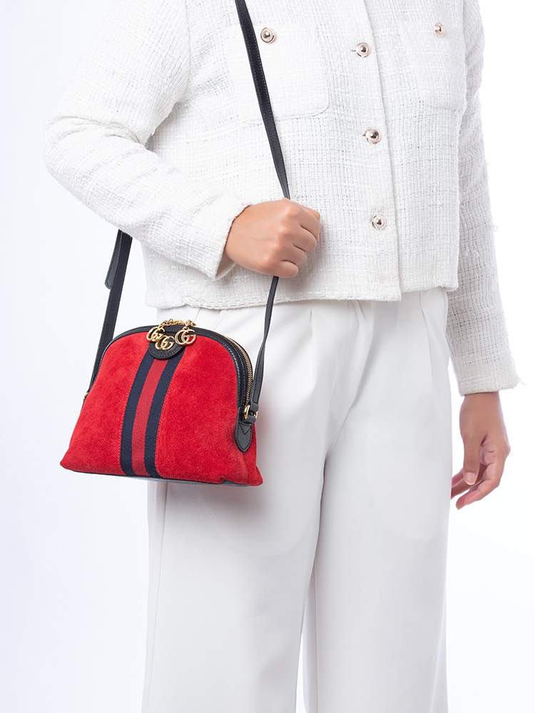 Suede GG Ophidia Small Dome Shoulder Bag Hibiscus Red