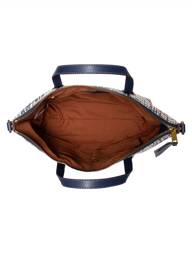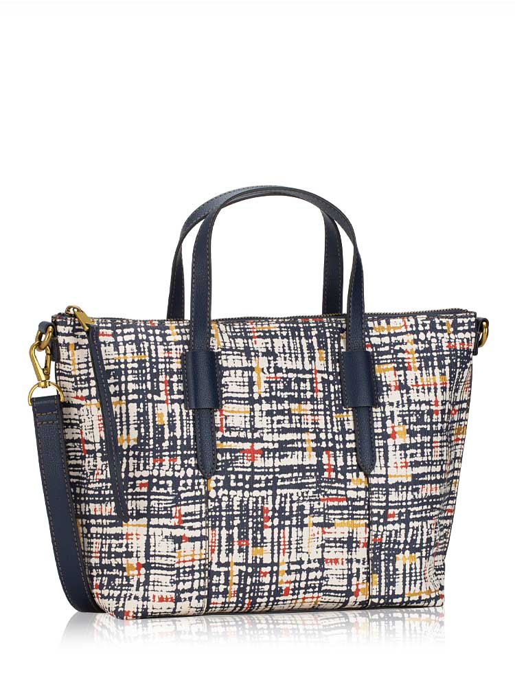 Made of PVC and Leather. The bag features a zip closure that opens to polyester lining with two slip pocket , one zip pocket, exterior one slip pocket at back, adjustable and removable long strap, double handles drop 13.