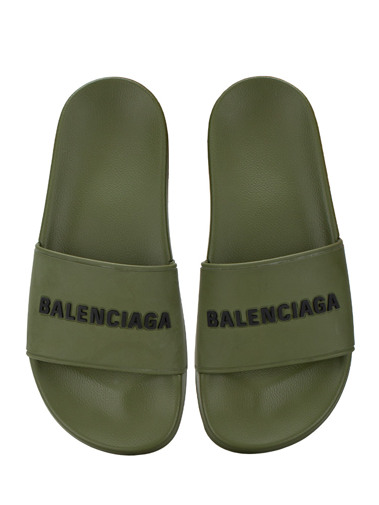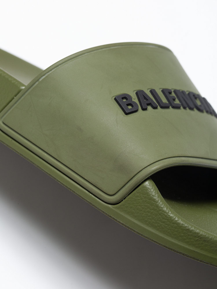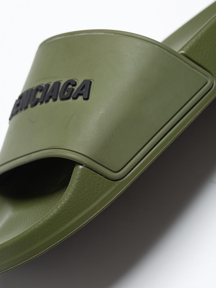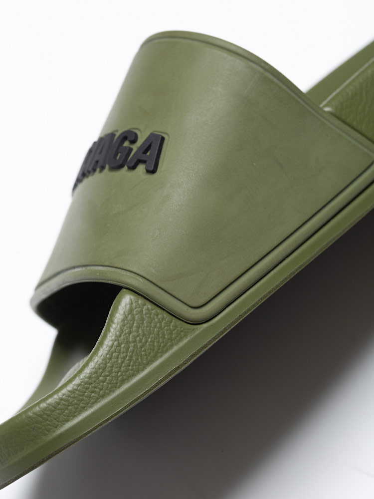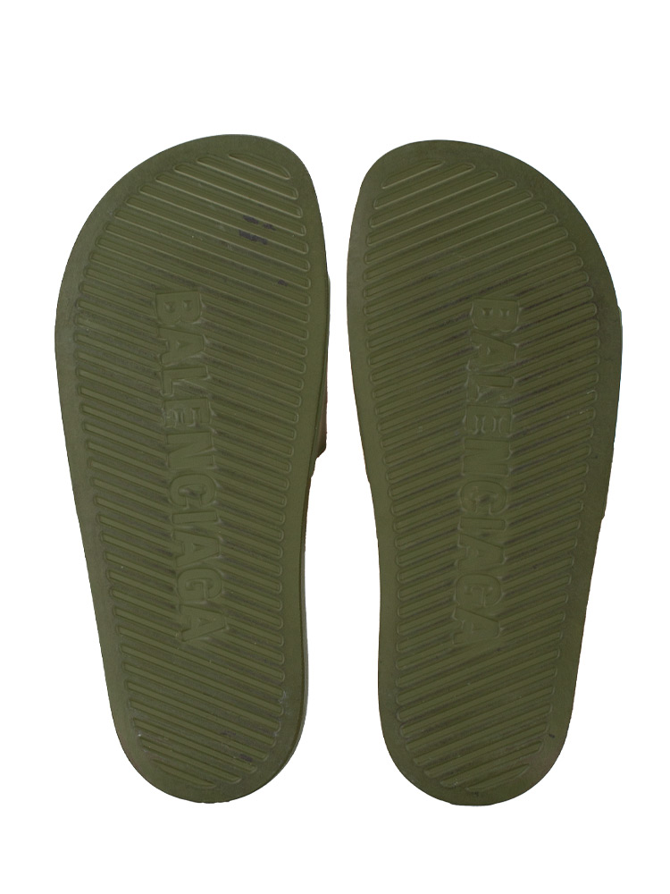 Rubber Logo Pool Slide Sandals Army Green Sz 37