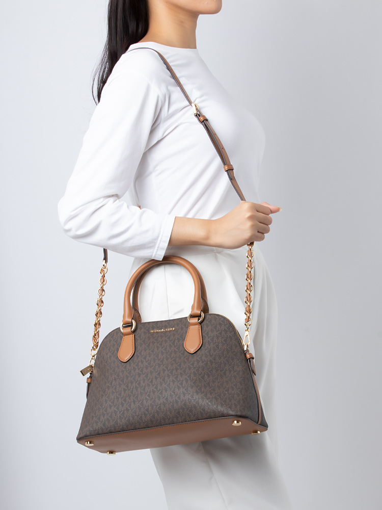 Signature Veronica Medium Dome Satchel Brown Acorn
