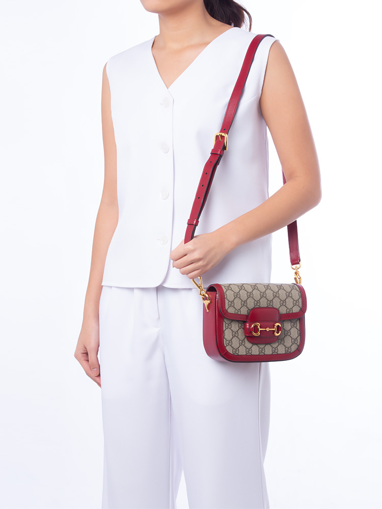 GG Supreme Web Horsebit 1955 Mini Shoulder Bag Beige Red