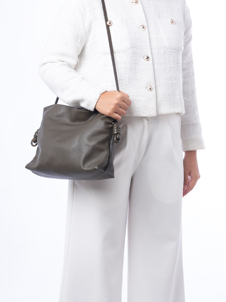 Nappa Calfskin Flamenco Knot Crossbody Khaki Green