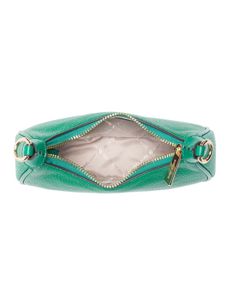 Crafted from leather with logo polyester lining interior material. It features an open zip pocket, gold tone hardware, 3 card slots, removable chain strap and removable or adjustable long strap crossbody wear.