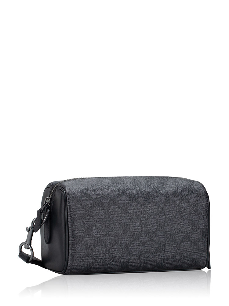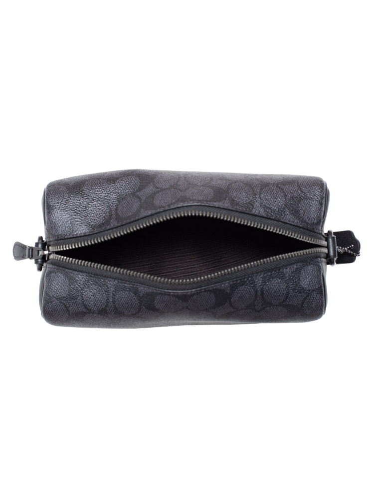 Made of signature coated canvas and smooth leather. The bag features a zip closure that opens to fabric lining with interior one slip pocket.
