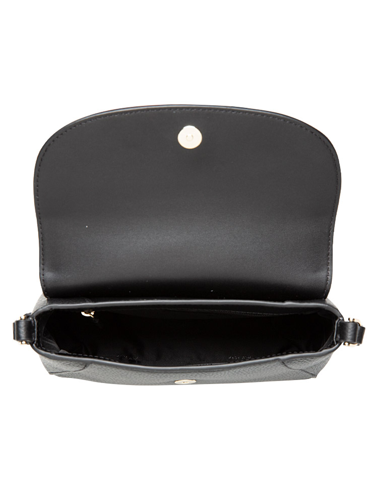 Made of pebble leather. The bag features a flap with magnetic closure that opens to two way script logo lining with one zip pocket, adjustable strap.