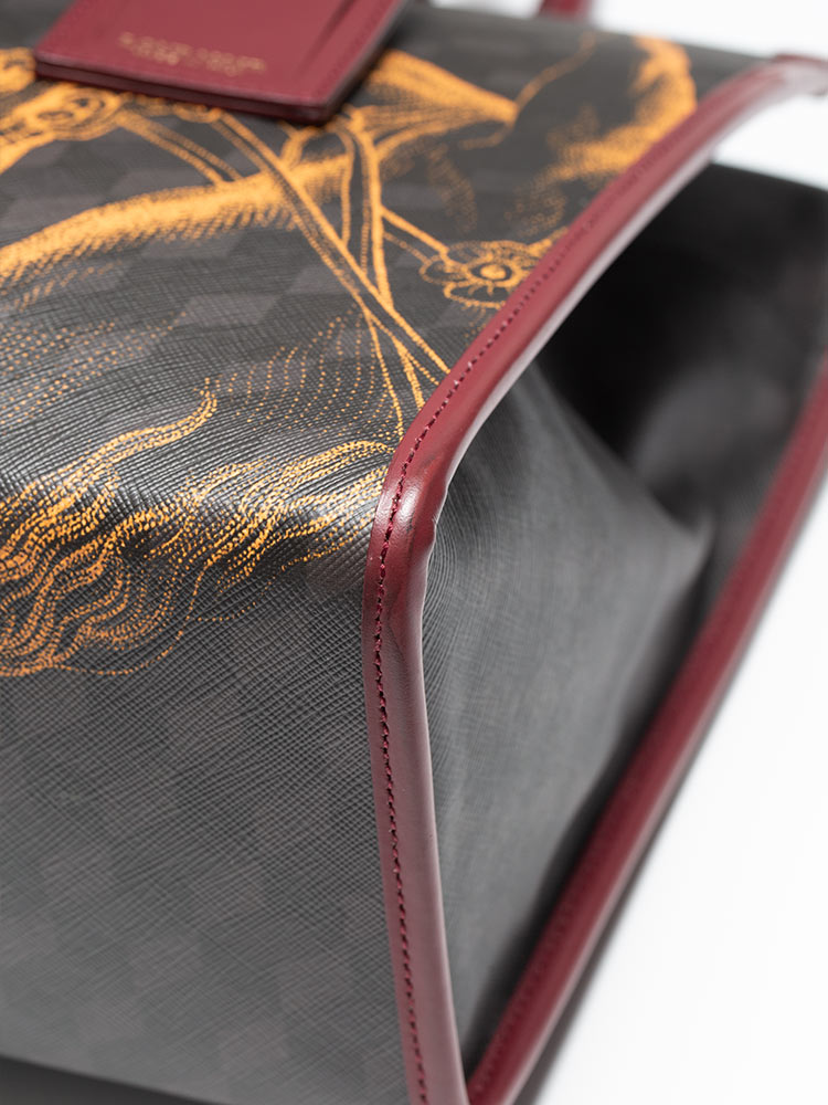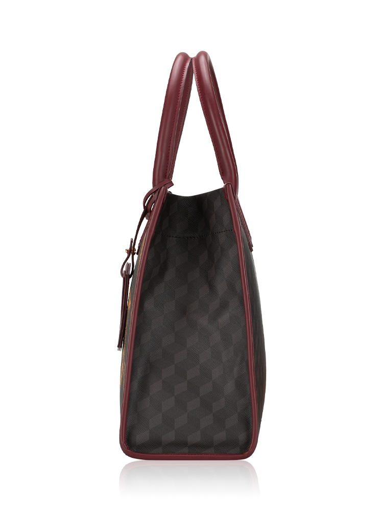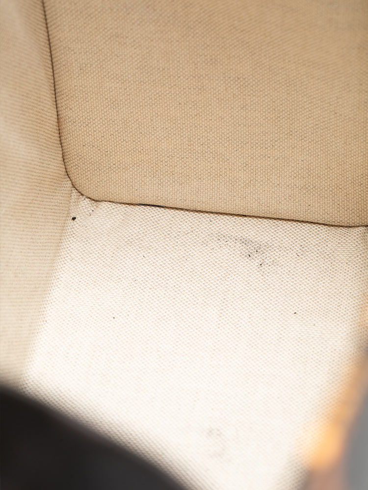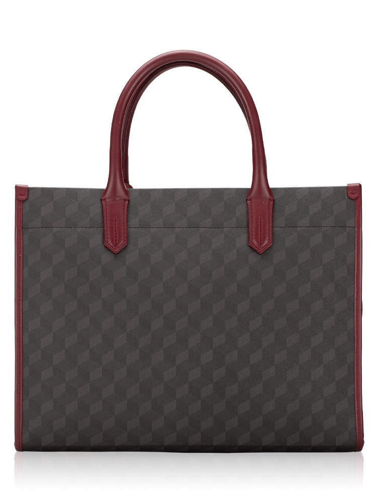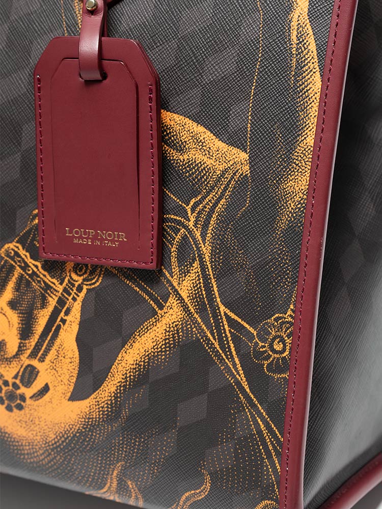 This tote bag is crafted of Loup Noir coated canvas. It features leather trim, and double top handles. The bag opens to a spacious fabric lining with patch pockets.