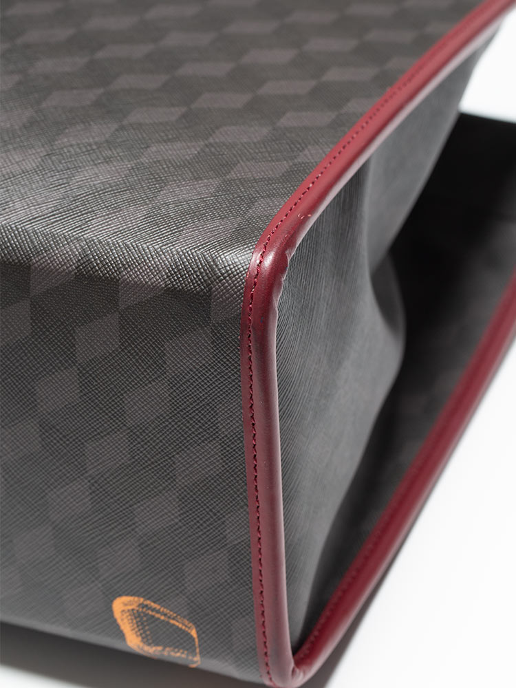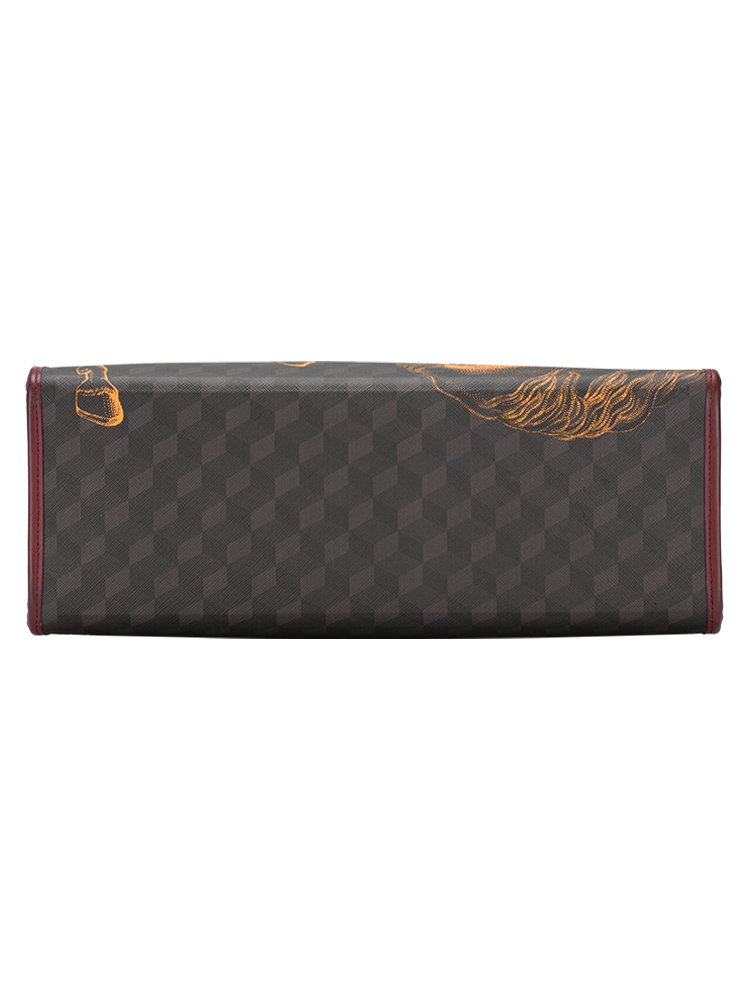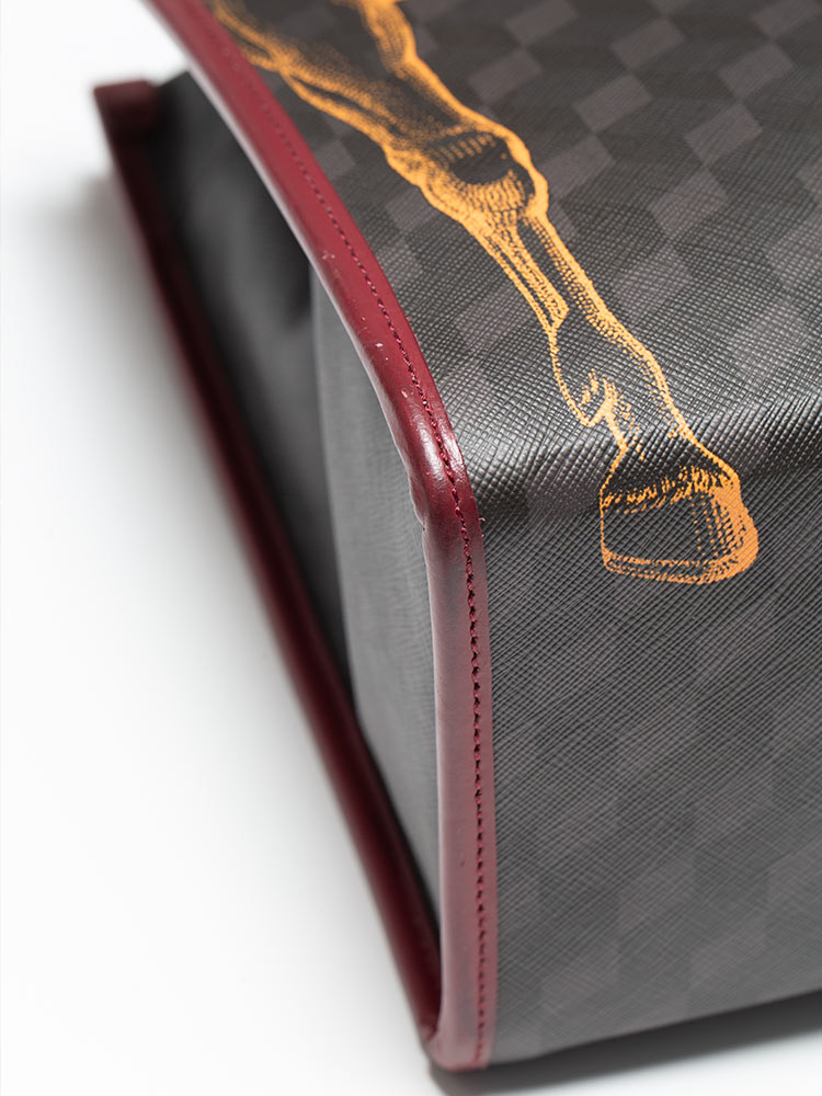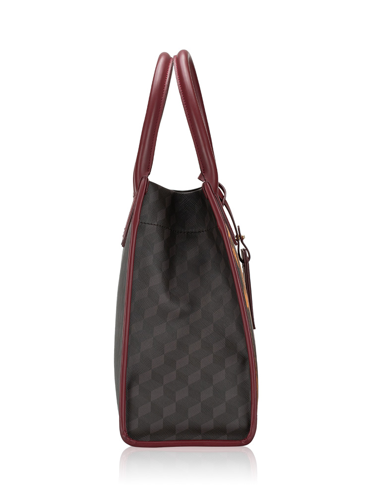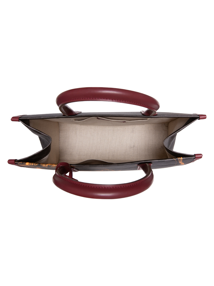 This tote bag is crafted of Loup Noir coated canvas. It features leather trim, and double top handles. The bag opens to a spacious fabric lining with patch pockets.