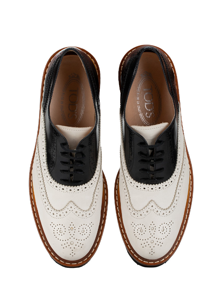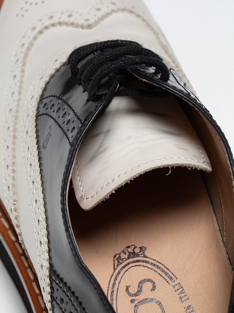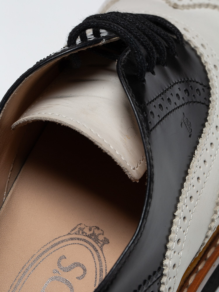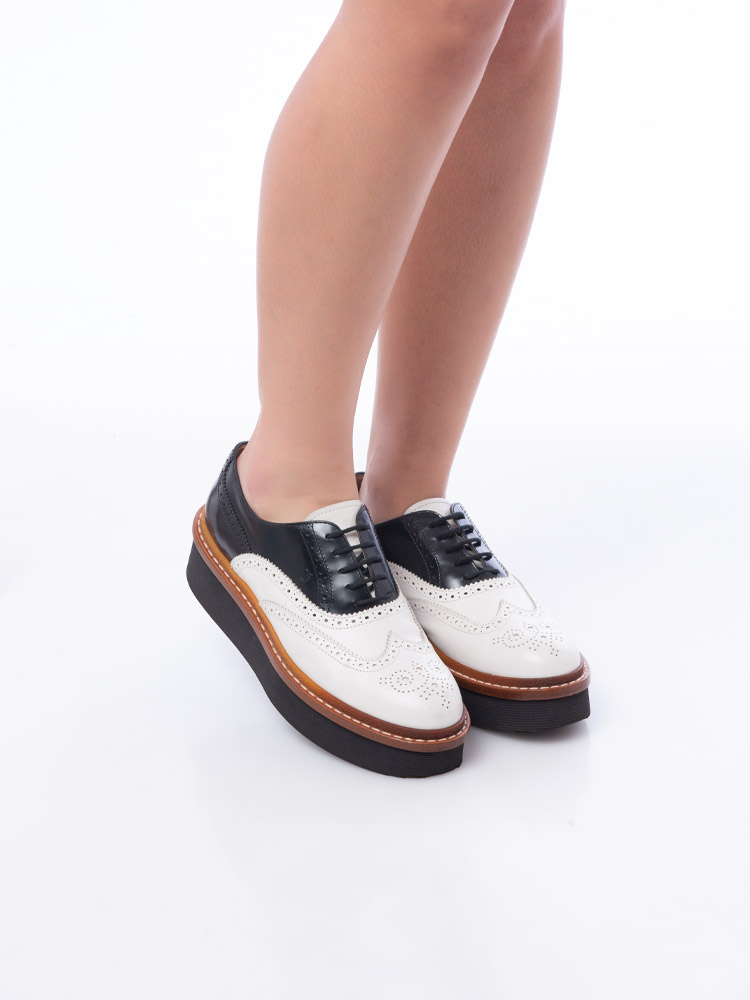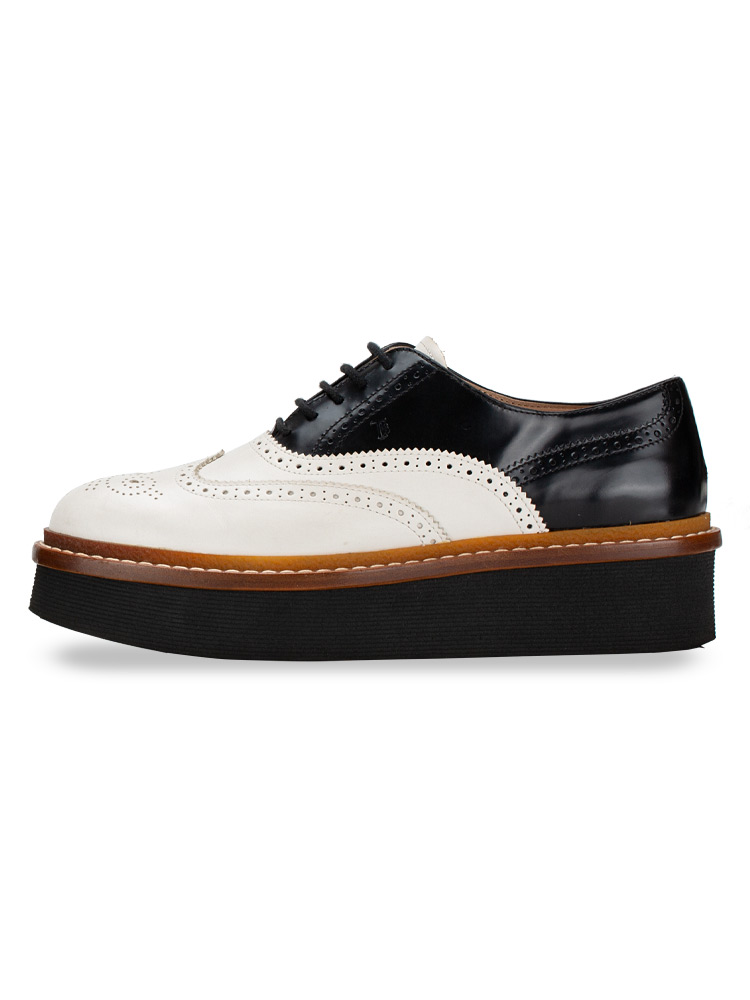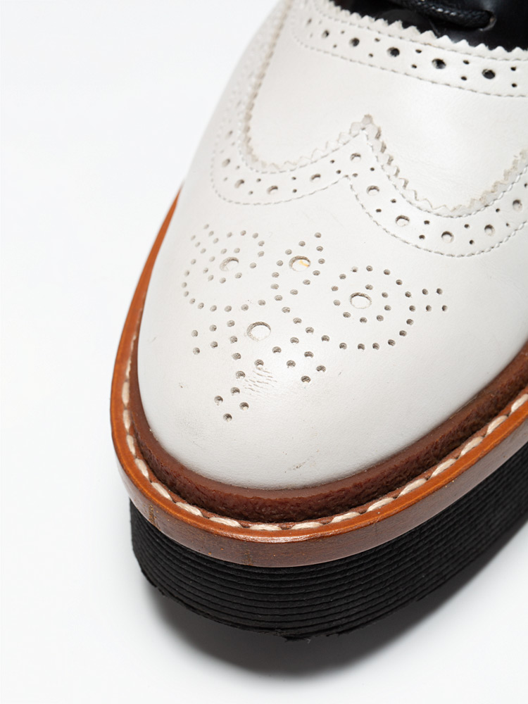 Calfskin Brogue Lace Up Platform Oxfords Black White Sz 37.5