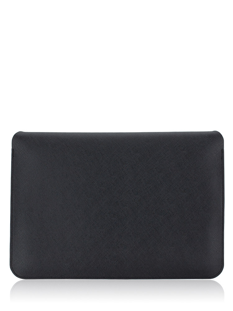 This Karl Lagerfeld MacBook sleeve fits perfectly in Karl Lagerfelds stylish Rue St-Guillaume collection, which also includes bags and suitcases. The sleeve is made of black vegan leather with a Saffiano look.