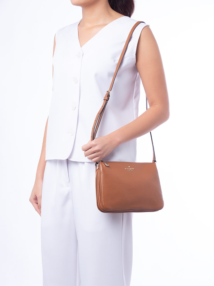 Leila Leather Triple Gusset Crossbody Warm Ginger