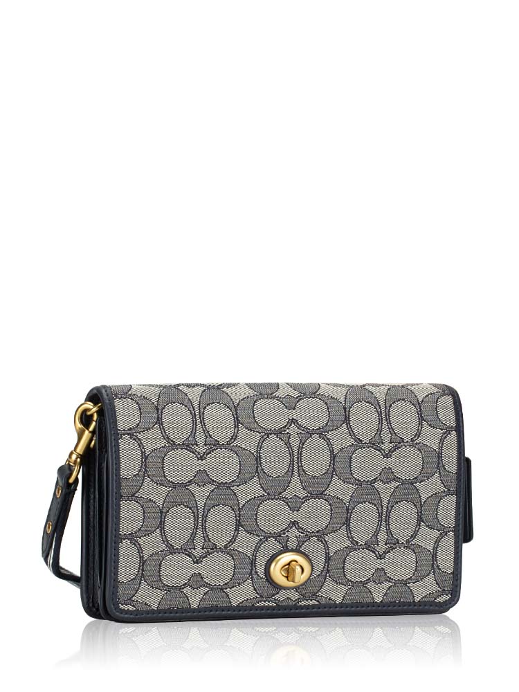 C3824 Signature Jacquard Hayden Foldover Crossbody Clutch Midnight Navy