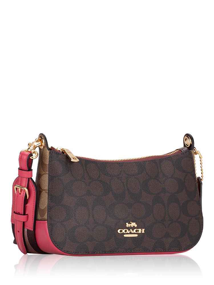 C6825 Signature Jes Baguette Blocked Crossbody Brown Strawberry Haze Multi