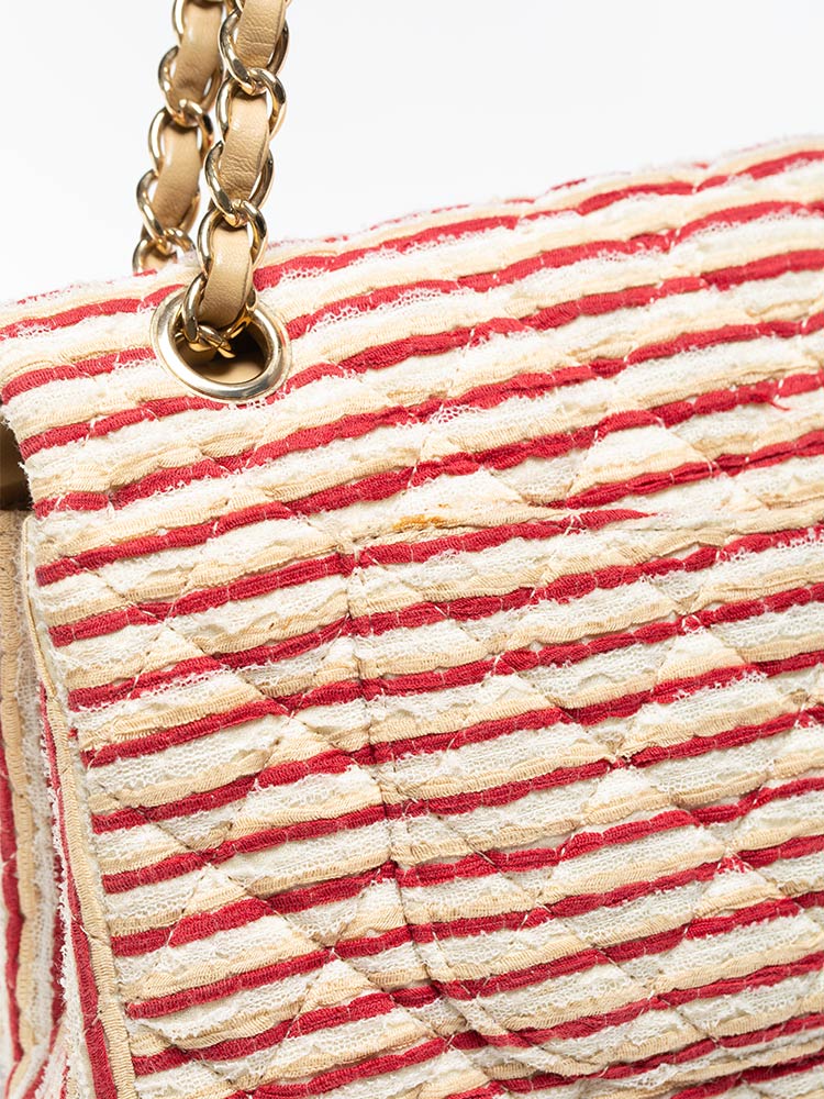 Jersey Medium Coco Sailor Double Flap Bag Red White