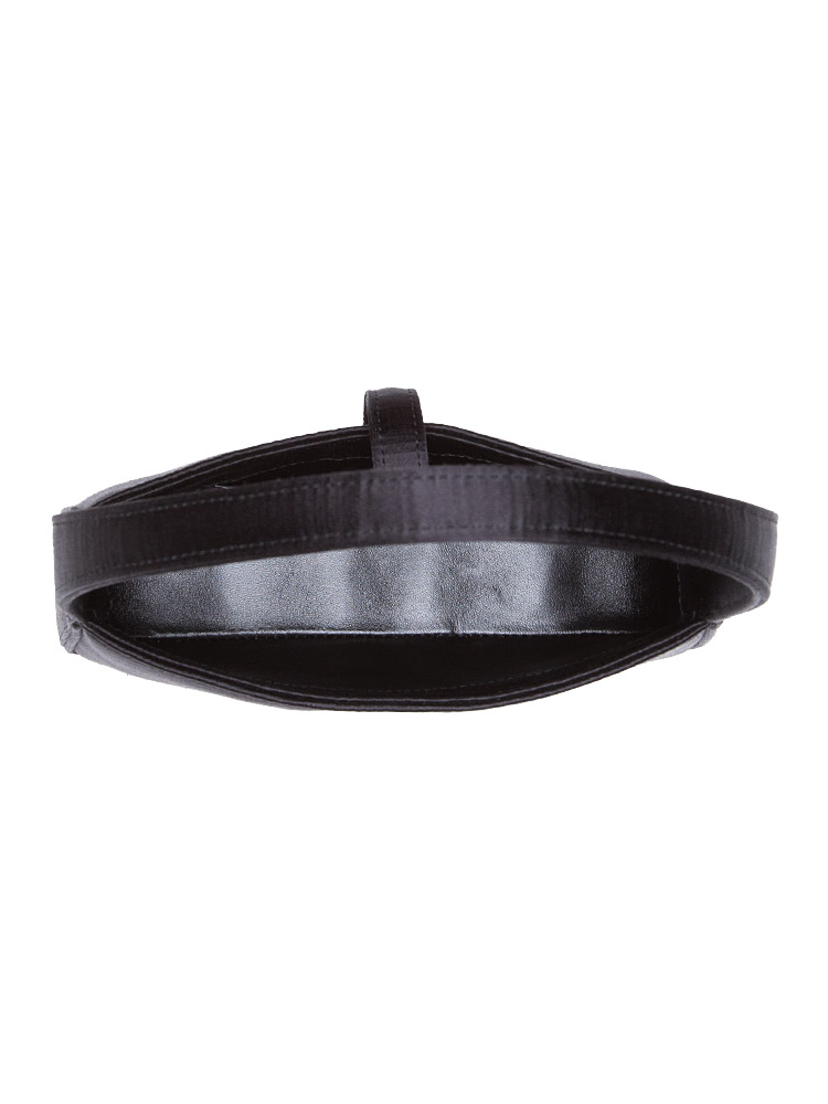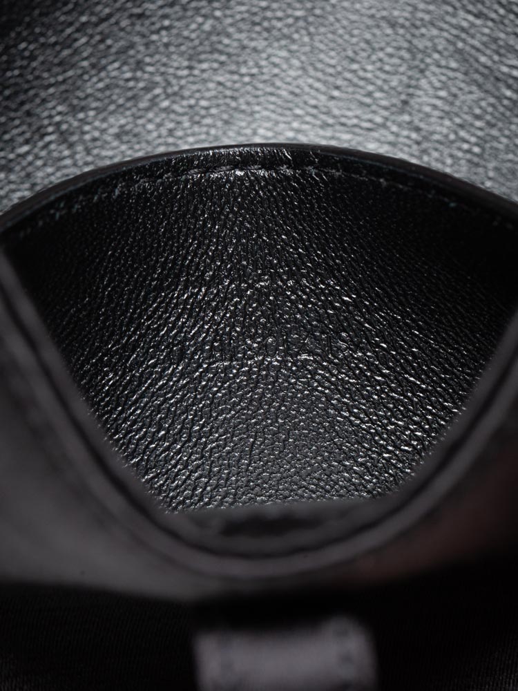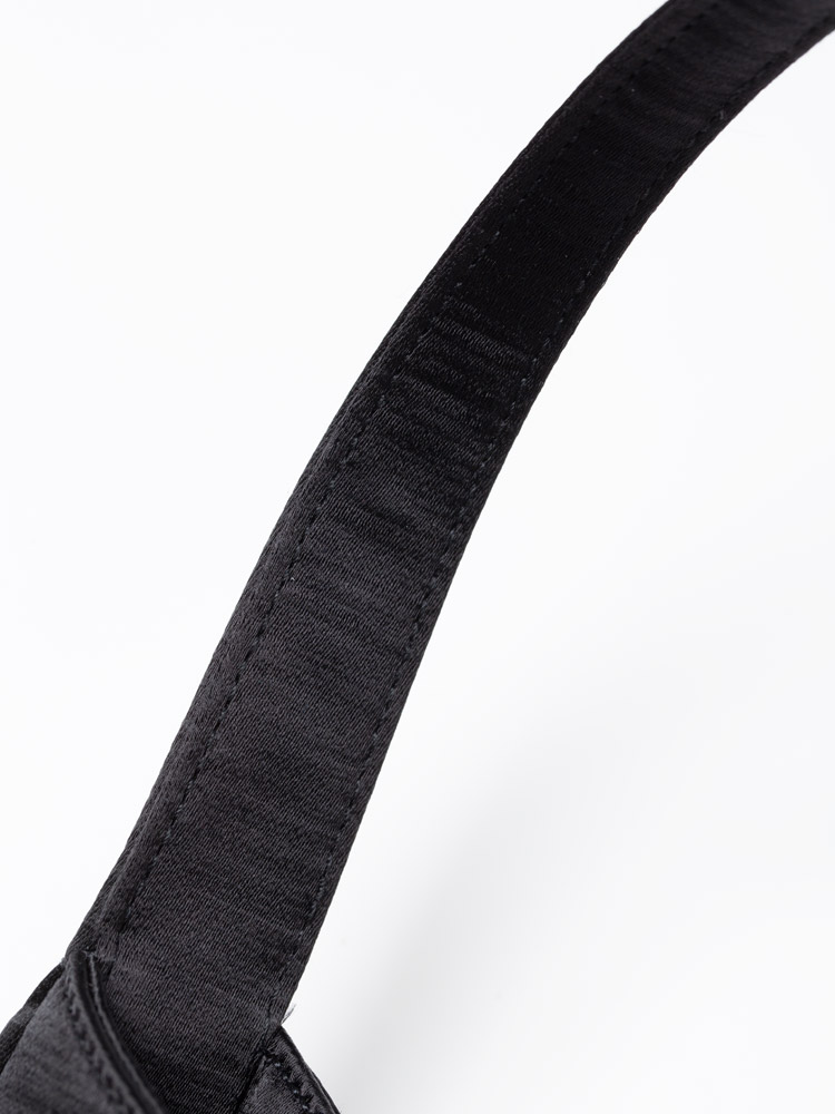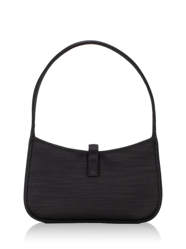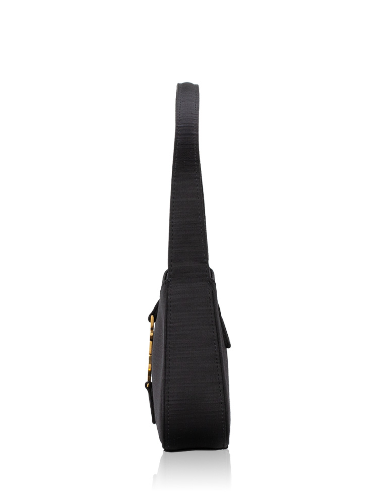 Crafted of satin fabric . The front features a gold prominent YSL monogram crossover strap that opens to a leather interior.