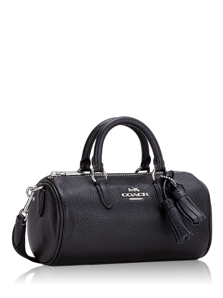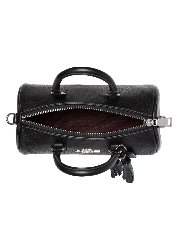 Made of pebbled leather. The bag features a zip closure that opens to fabric lining with double handles drop 7 cm, adjustable and removable long strap.
