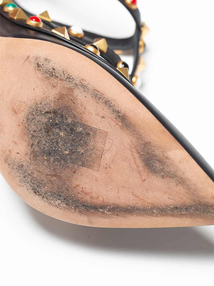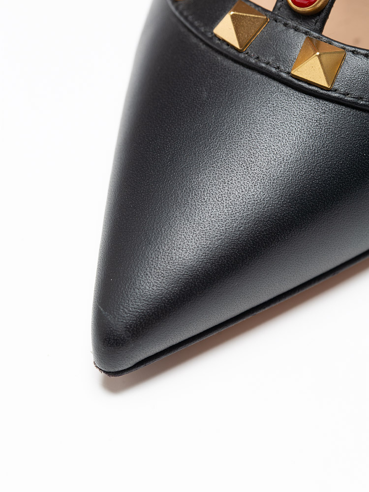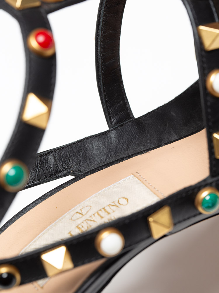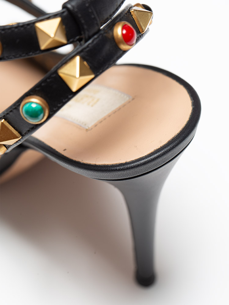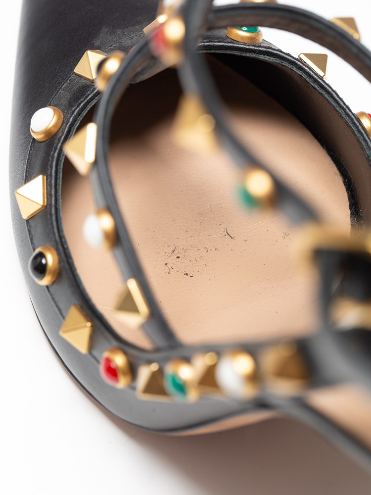 Nappa Rockstud Rolling Ankle Strap 100mm Pumps Black Sz 37.5