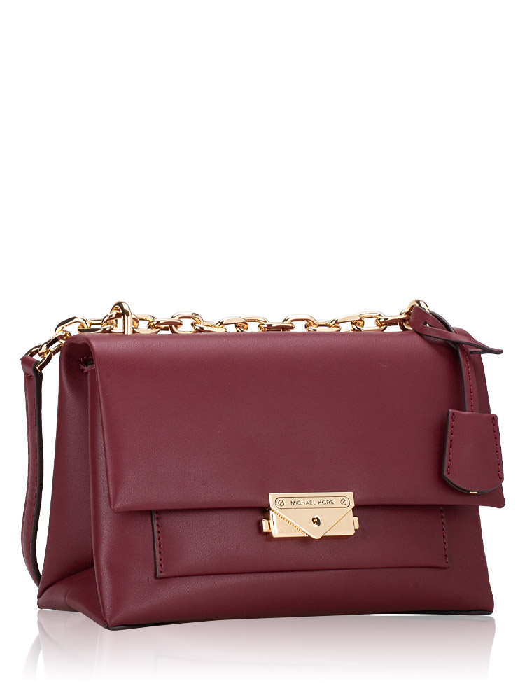 Cece Medium Flap Leather Shoulder Bag Dark Cherry