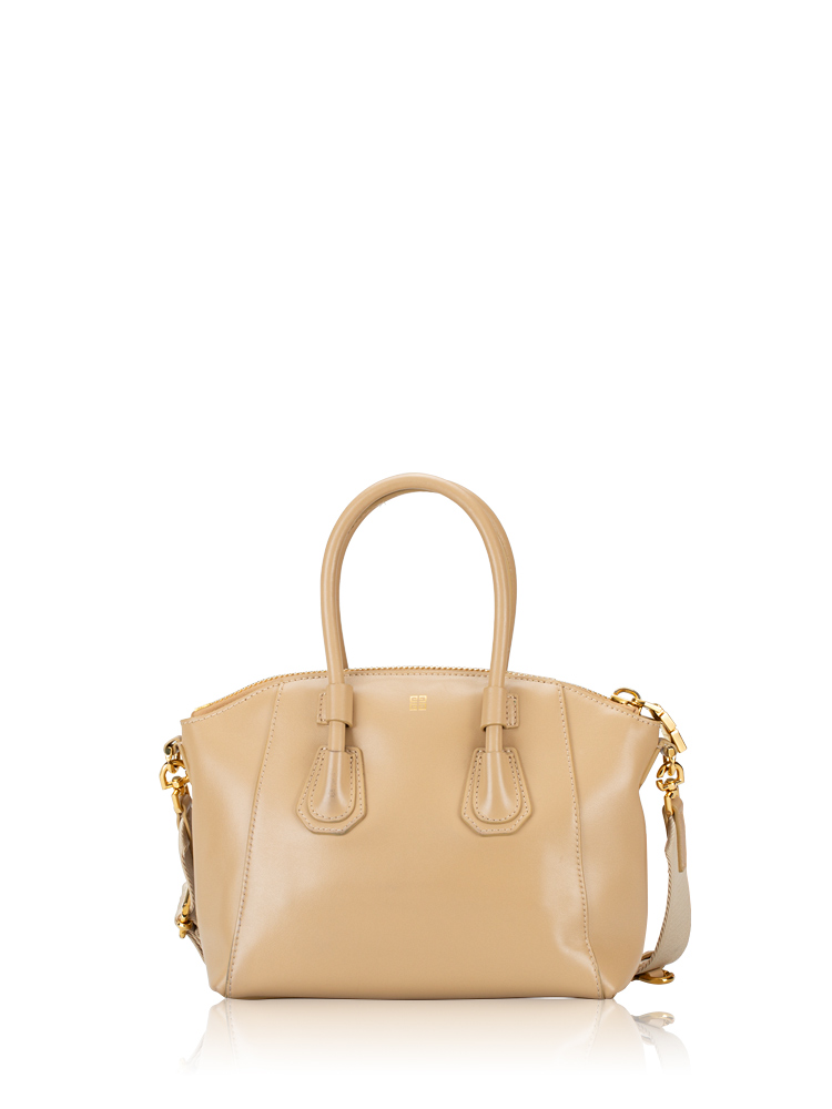 Shiny Lord Calfskin Mini Sport Antigona With Chain Beige Cappuccino