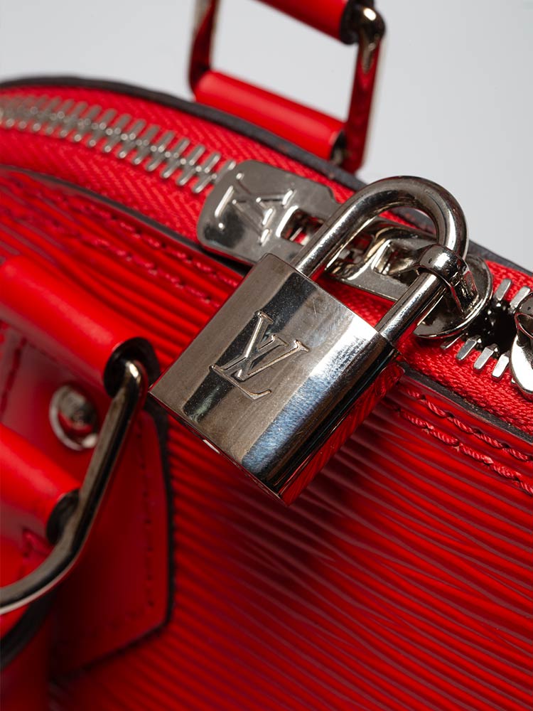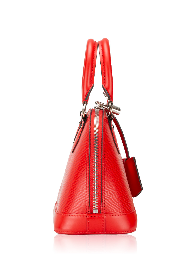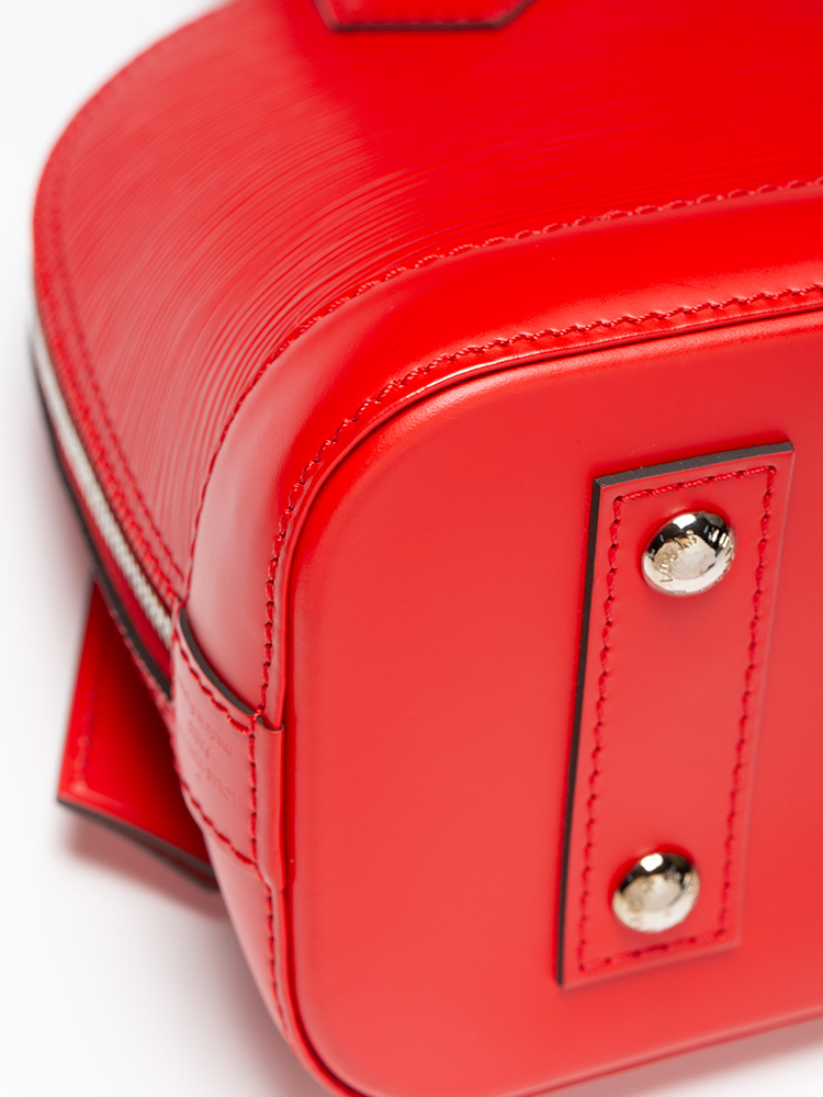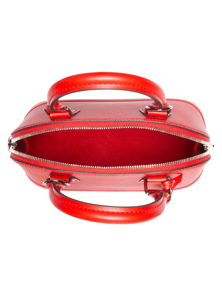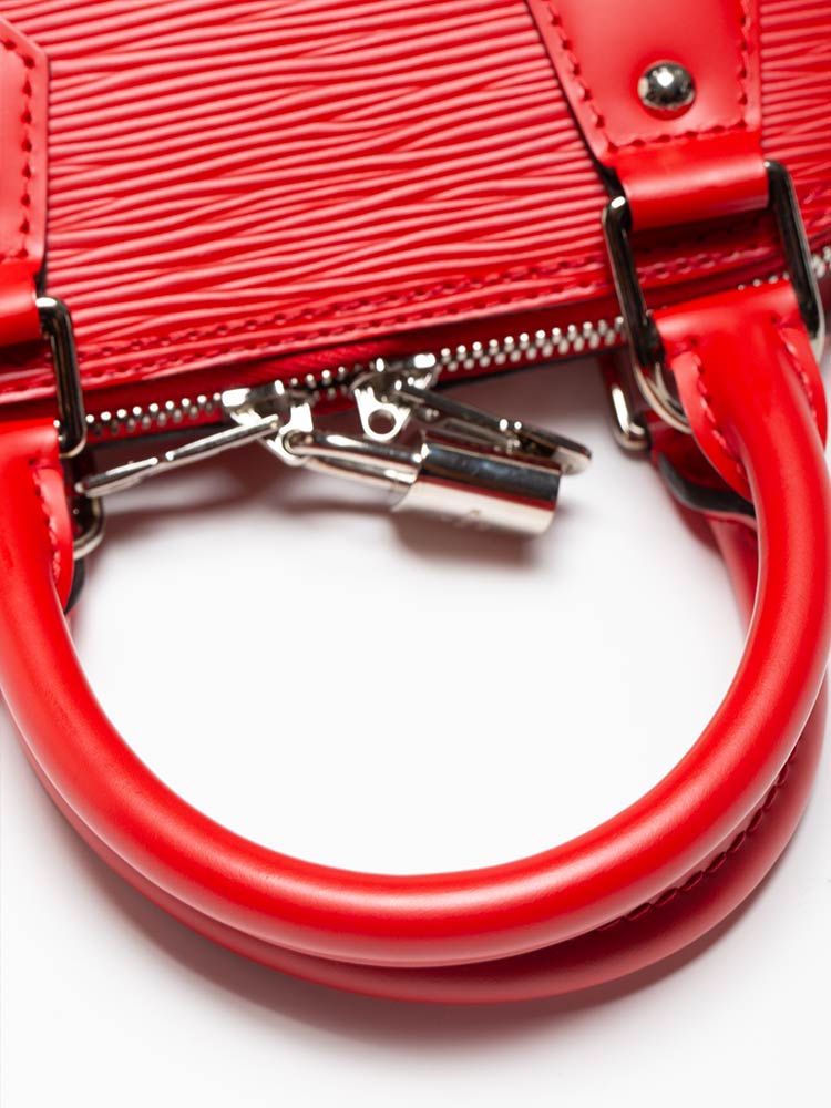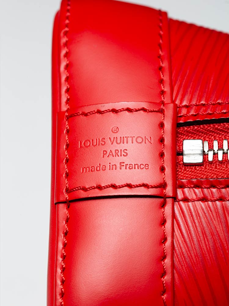 This tote is crafted of Louis Vuitton epi leather. Features an optional leather crossbody strap, rolled leather top handles, and silver hardware. The wrap-around zippers open to a microfiber interior with a patch pocket.