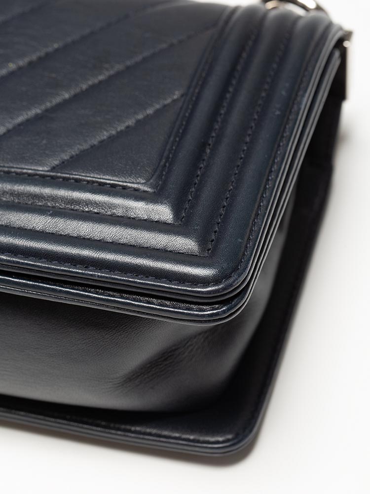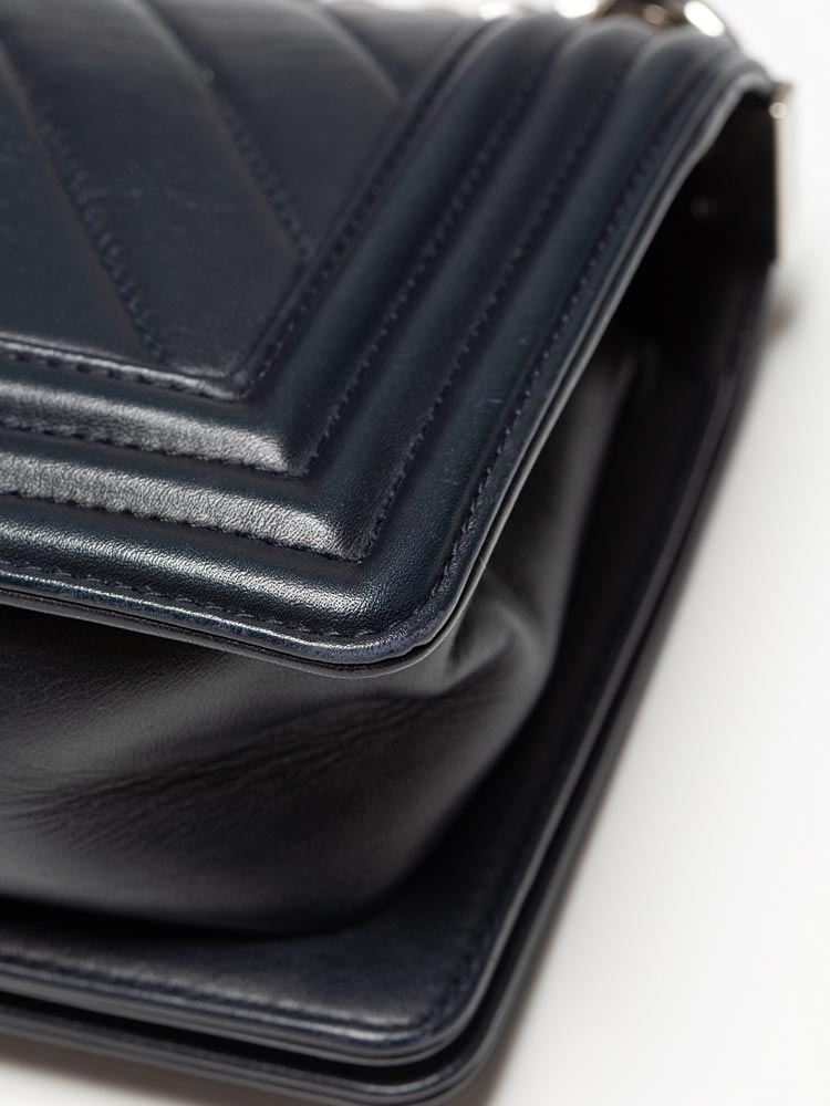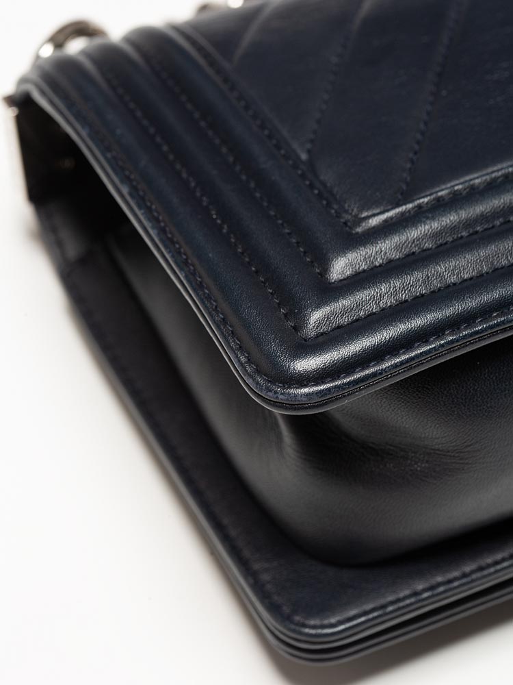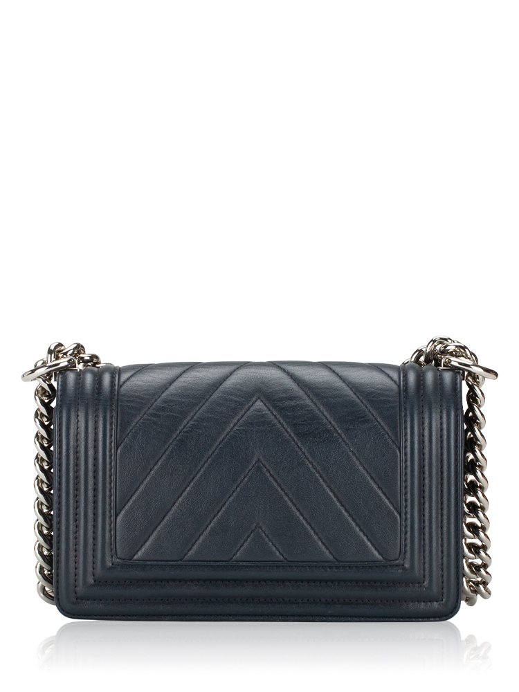 Lambskin Chevron Small Boy Flap Bag Dark Blue