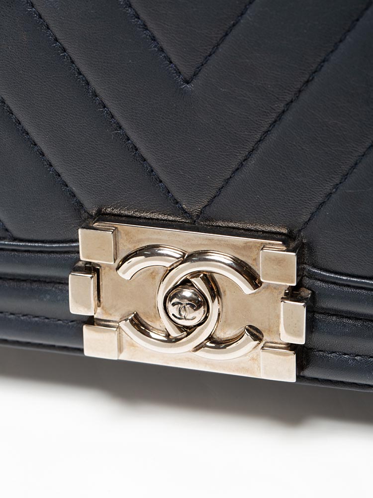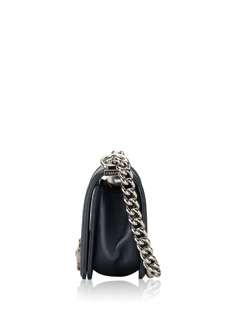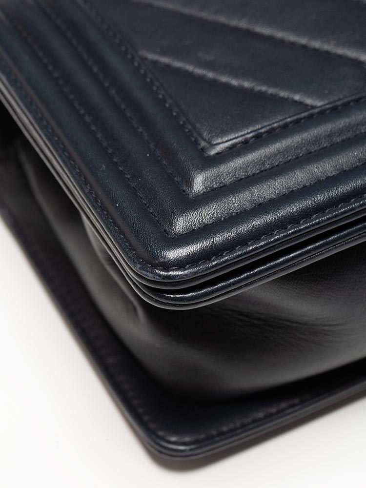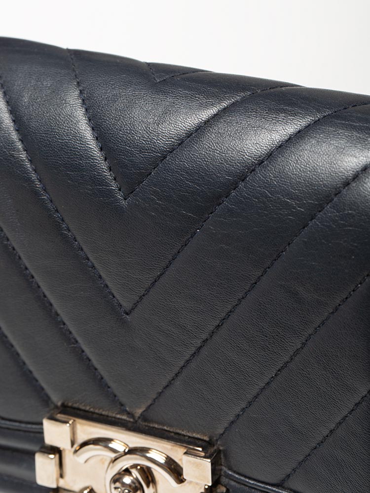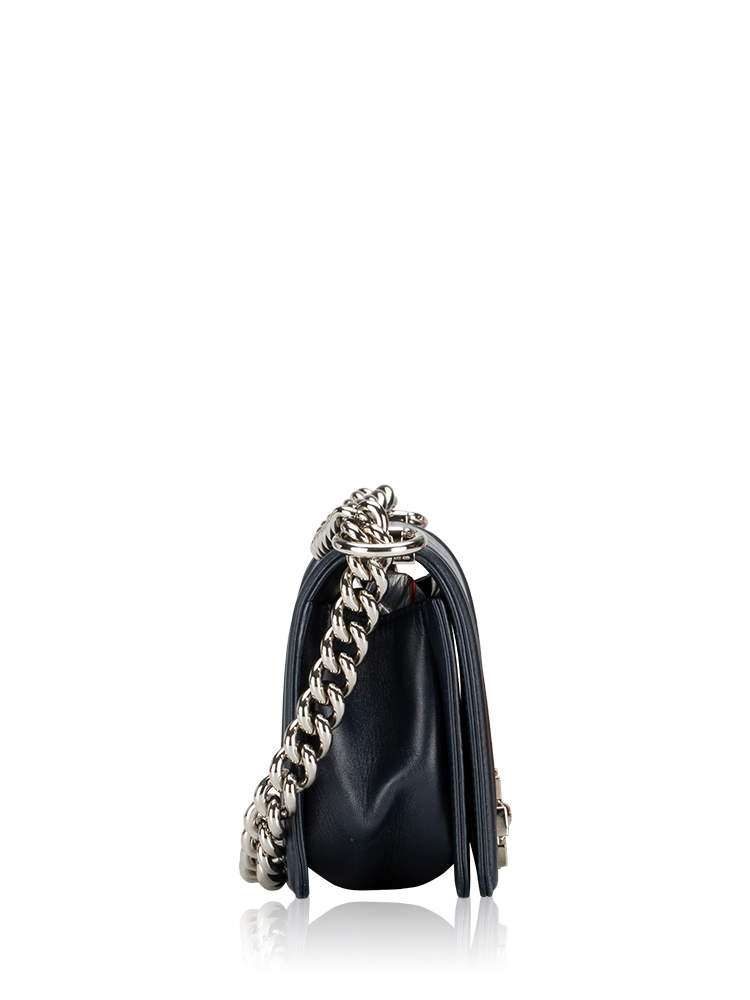 Lambskin Chevron Small Boy Flap Bag Dark Blue