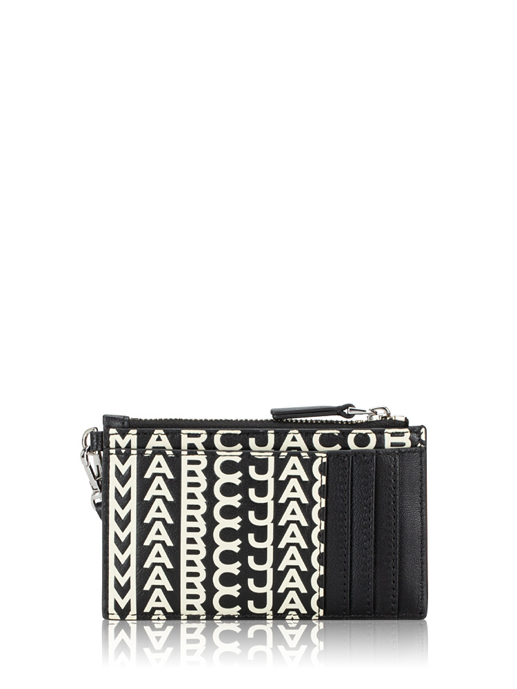 Made of monogram lamb leather with fabric lining. The wristlet features an open zip closure, four eksterior card slots, one eksterior slip compartments and removable wrist strap.