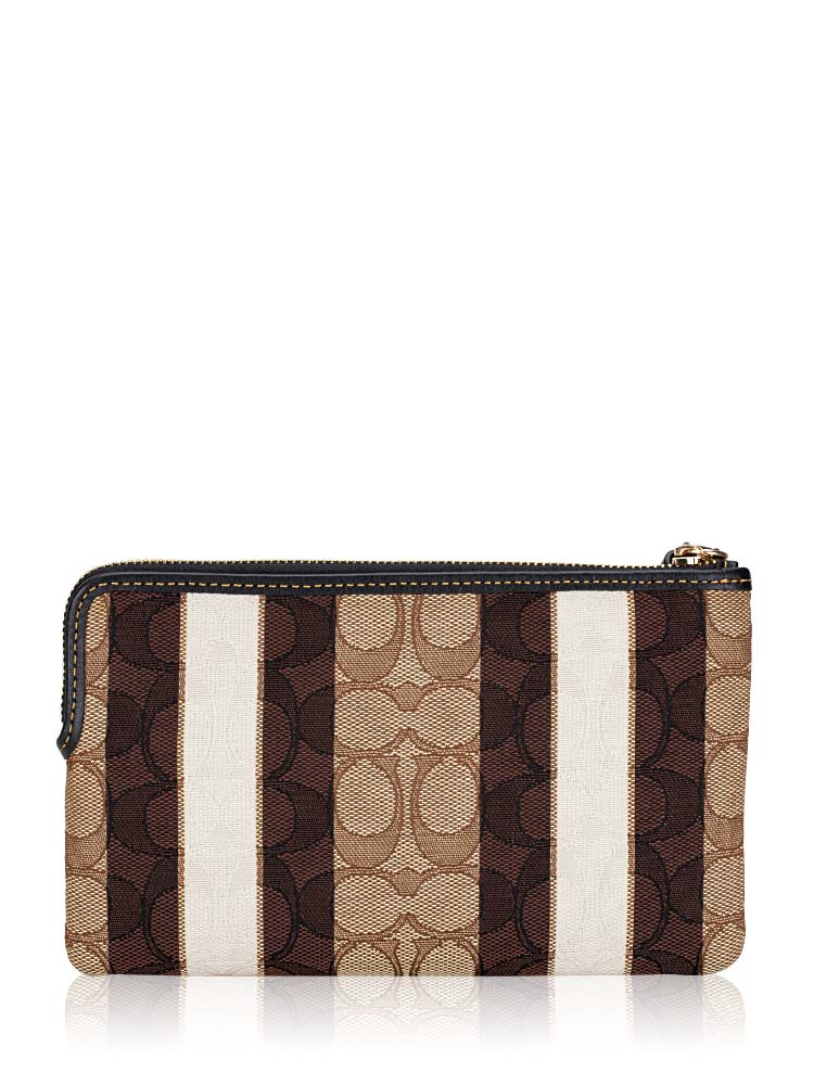 C8753 Signature Stripes Corner Zip Wristlet Khaki Black Multi