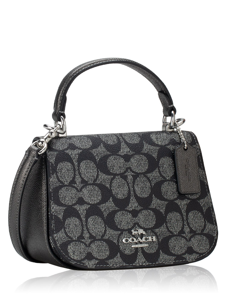 CX576 Signature Lysa Metallic Top Handle Bag Gunmetal Multi